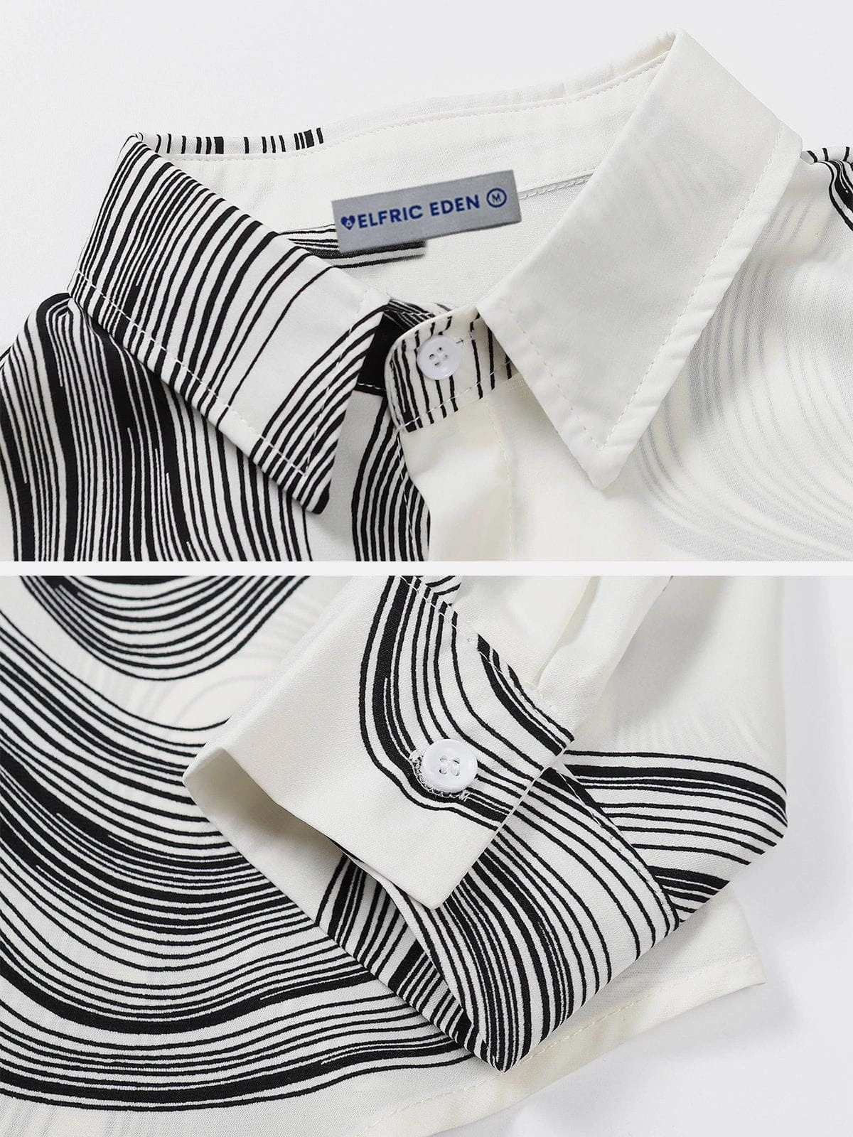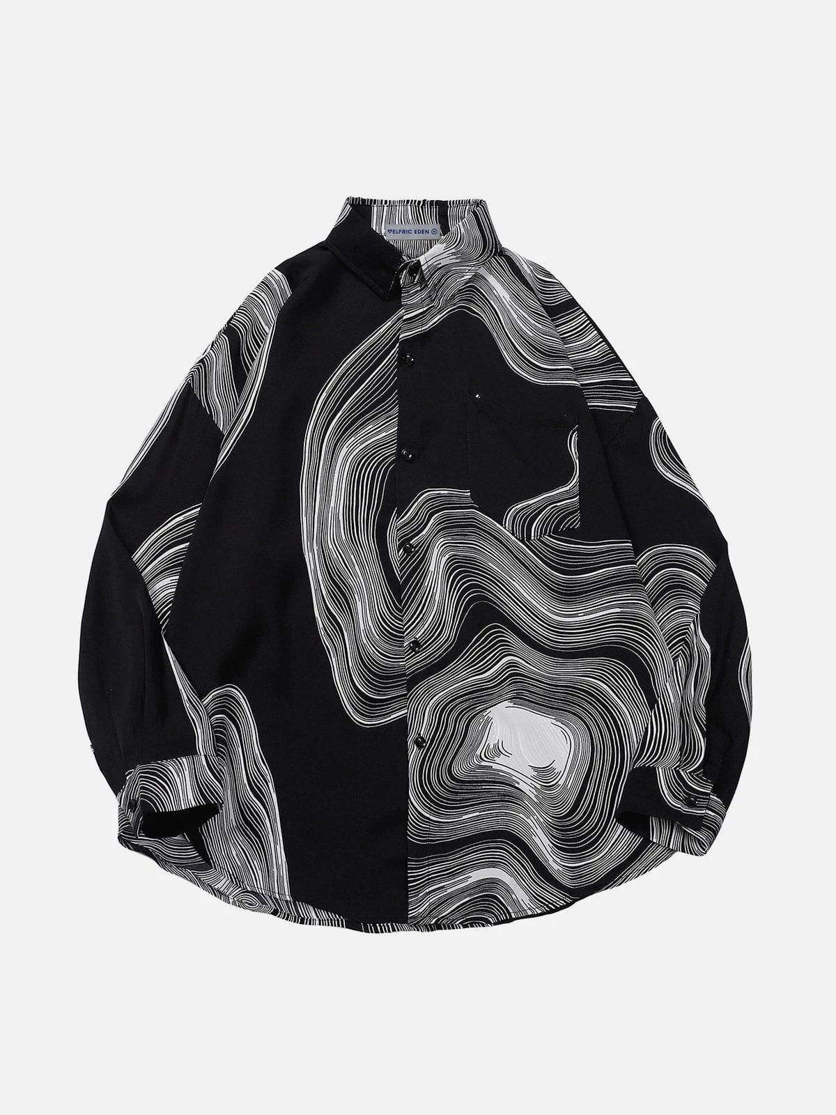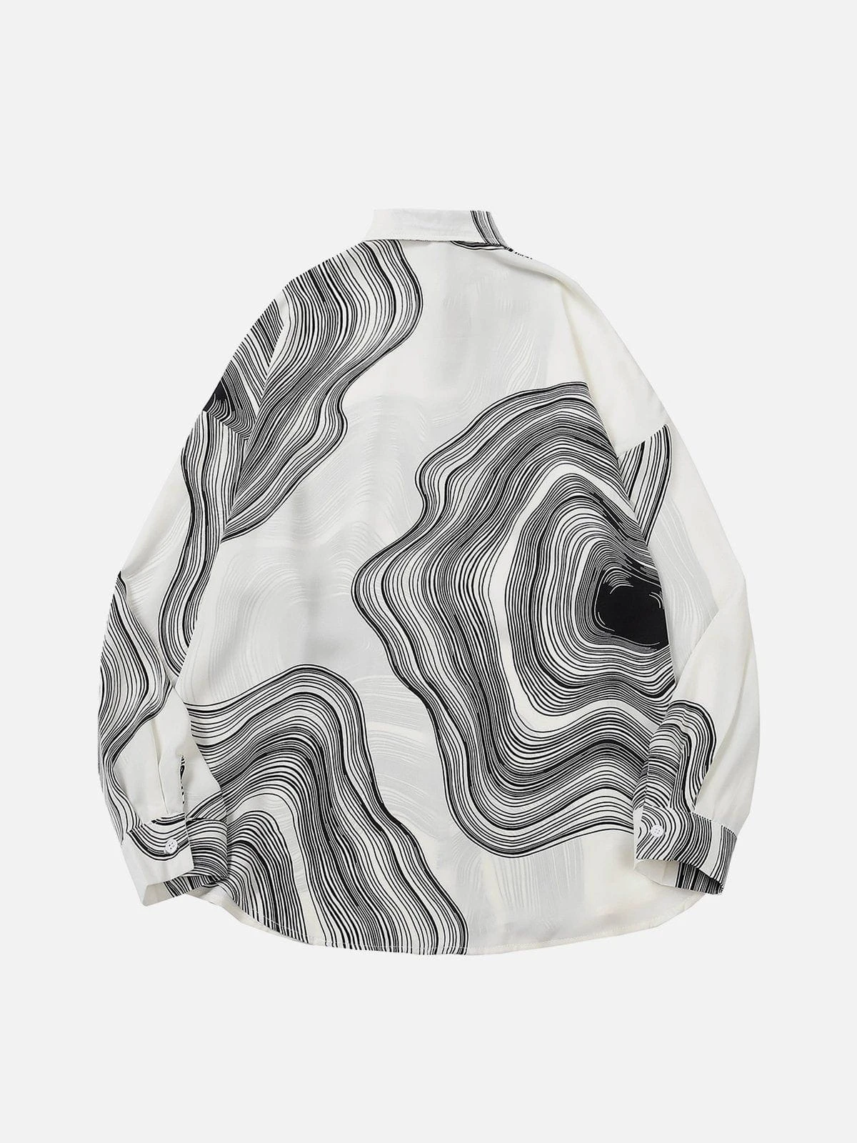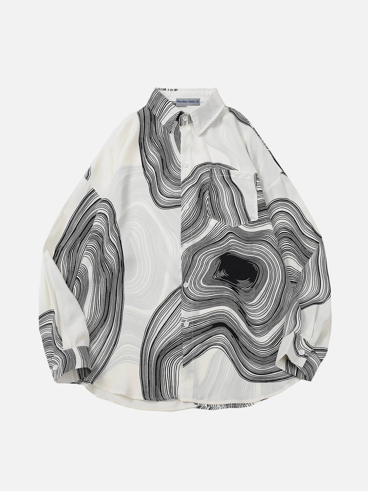 Elegance unfolds in our shirts, where white meets black lines in perfect harmony. Each pattern tells a story, capturing the timeless traces of a tree’s journey through the years—a tale woven in concentric circles, layering history with every thread.