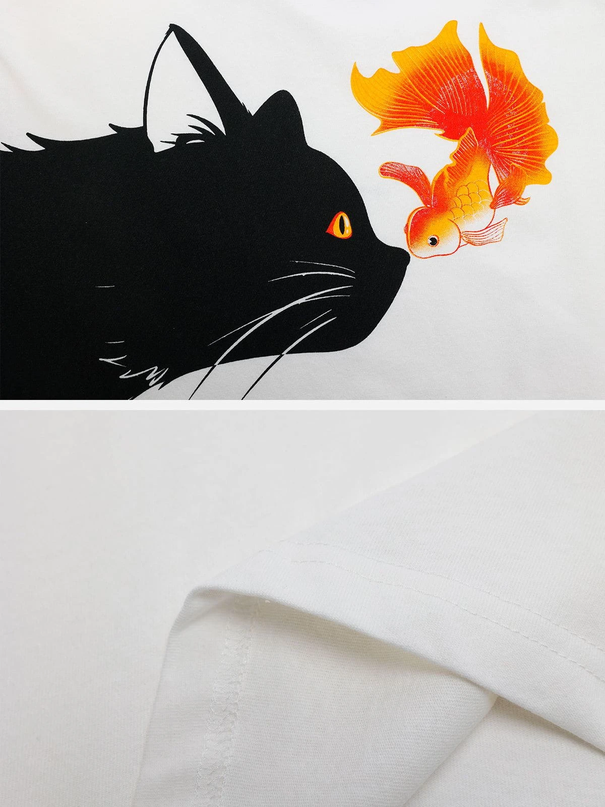 Explore the playful side of your wardrobe with this charming tee from Aelfriceden. Made from pure cotton, it features a regular fit and a delightful cat and fish print that will add a fun touch to your look. Perfect for casual outings, this tee can be paired with denim shorts or chinos for a laid-back yet stylish ensemble. The muted color of the tee allows the print to stand out, while the soft cotton fabric ensures all-day comfort. Make a statement and stand out from the crowd with this unique and charming tee.