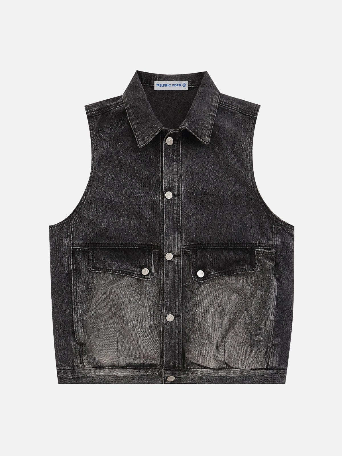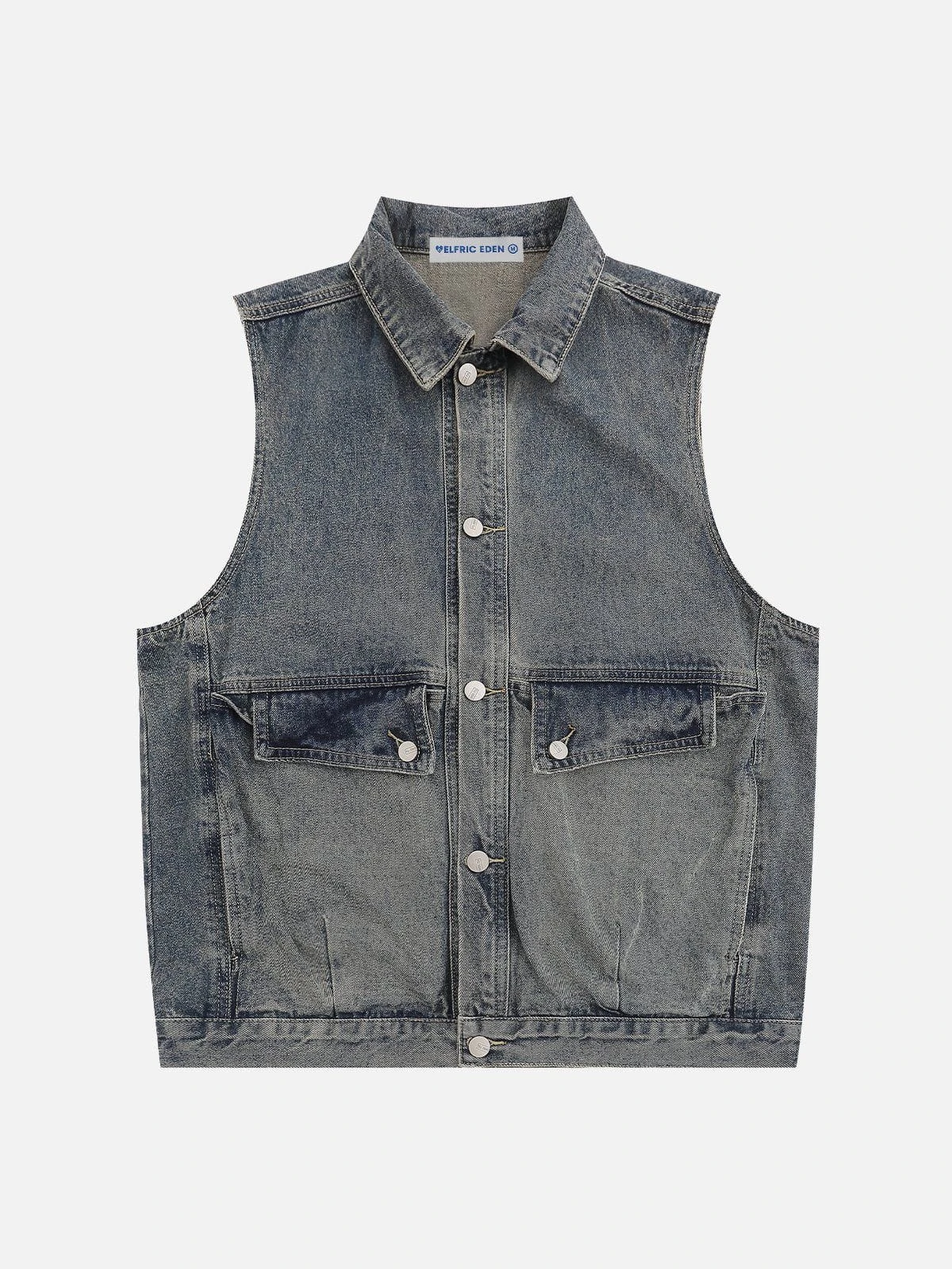 Stay on-trend with this Aelfric Eden Big Pocket Washed Denim Vest! This classic denim vest is washed to perfection, and the big pockets provide plenty of room to stash whatever your heart desires. Make a statement with this timeless style piece!