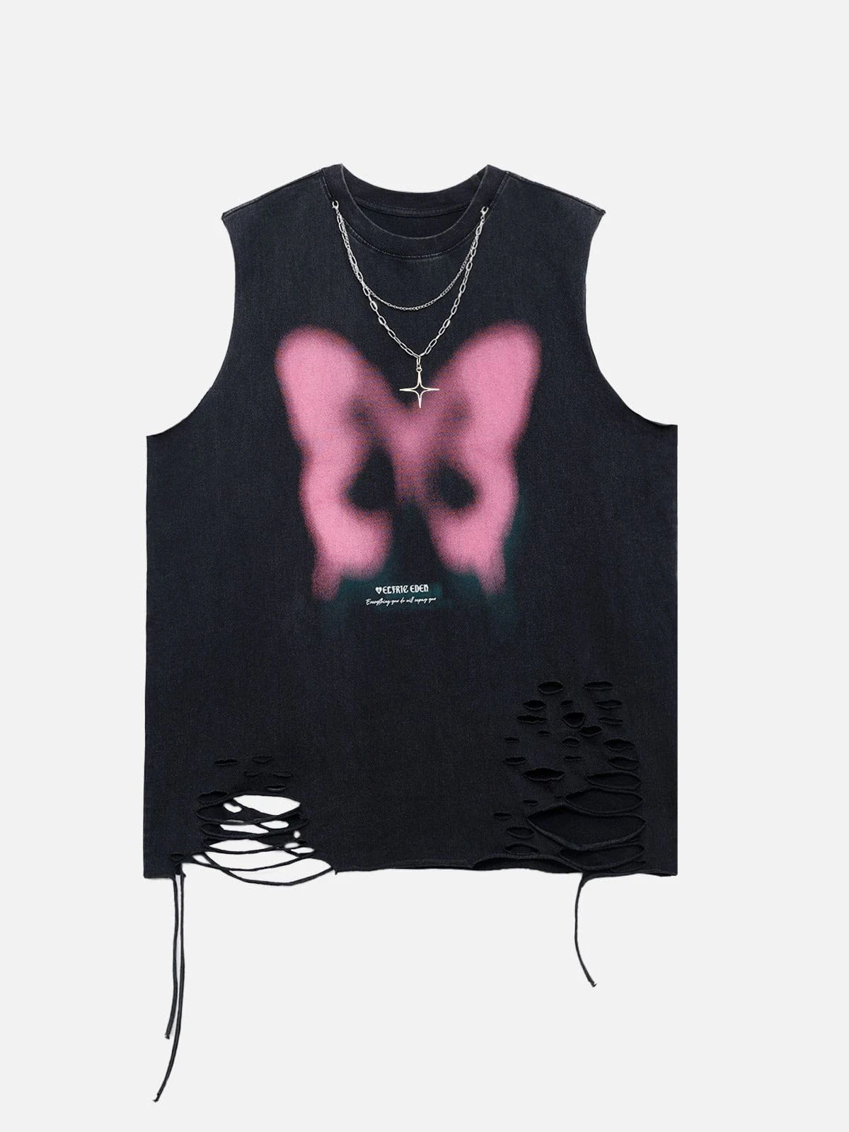 The Aelfric Eden Blurring Butterfly Washed Tank Top is a visually stunning piece that merges abstract butterfly motifs with a washed texture for a unique and captivating look.