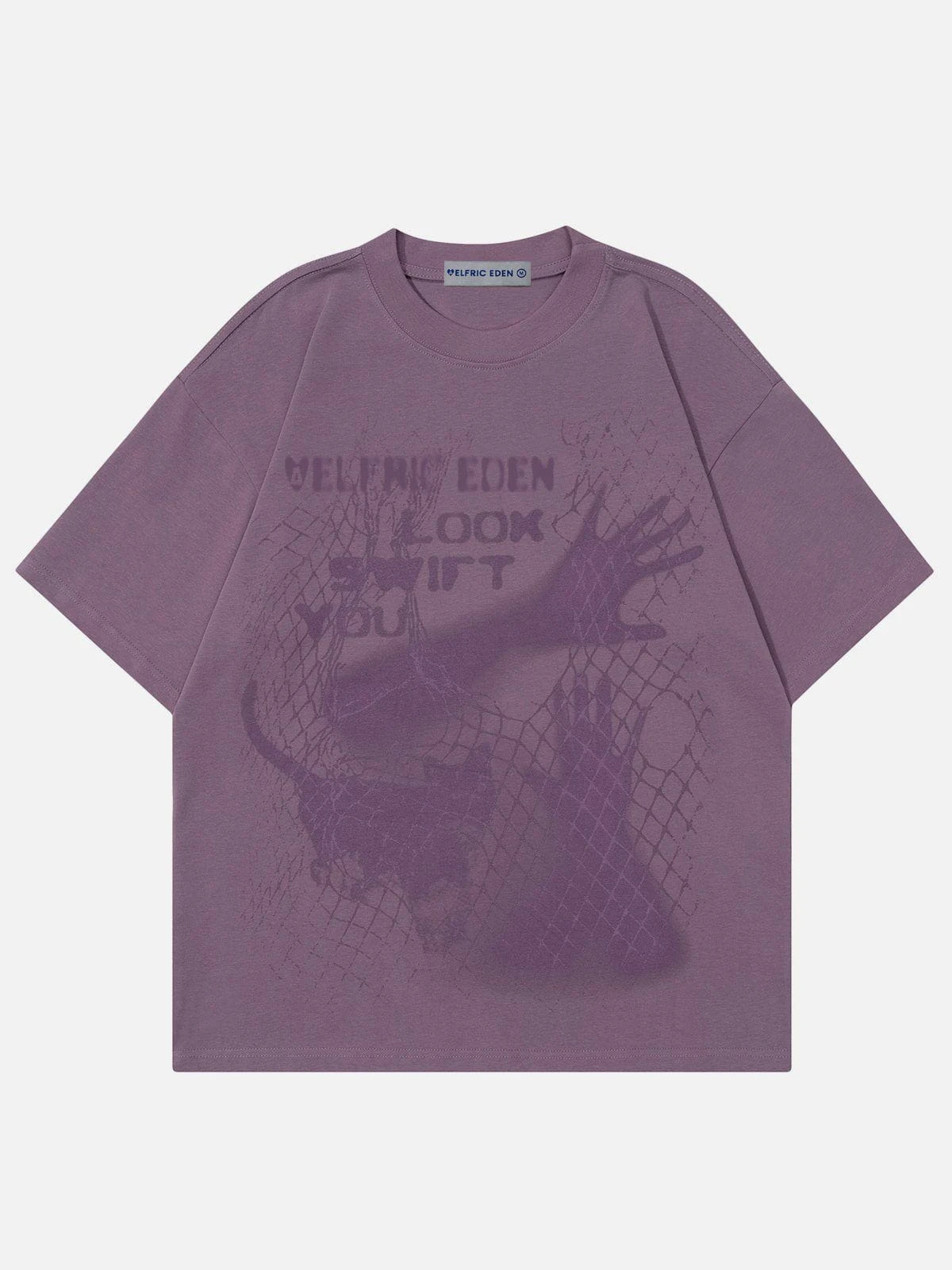 The Aelfric Eden Blurring Cat Print Tee intricately weaves elements of mystery and allure into its design. Through masterful strokes, shadows morph into captivating forms – the gentle curvature of a palm, the intricate lattice of a web, and the enigmatic silhouette of a cat. Each shadowy figure dances upon the fabric, inviting the viewer into a realm where reality blurs with imagination.