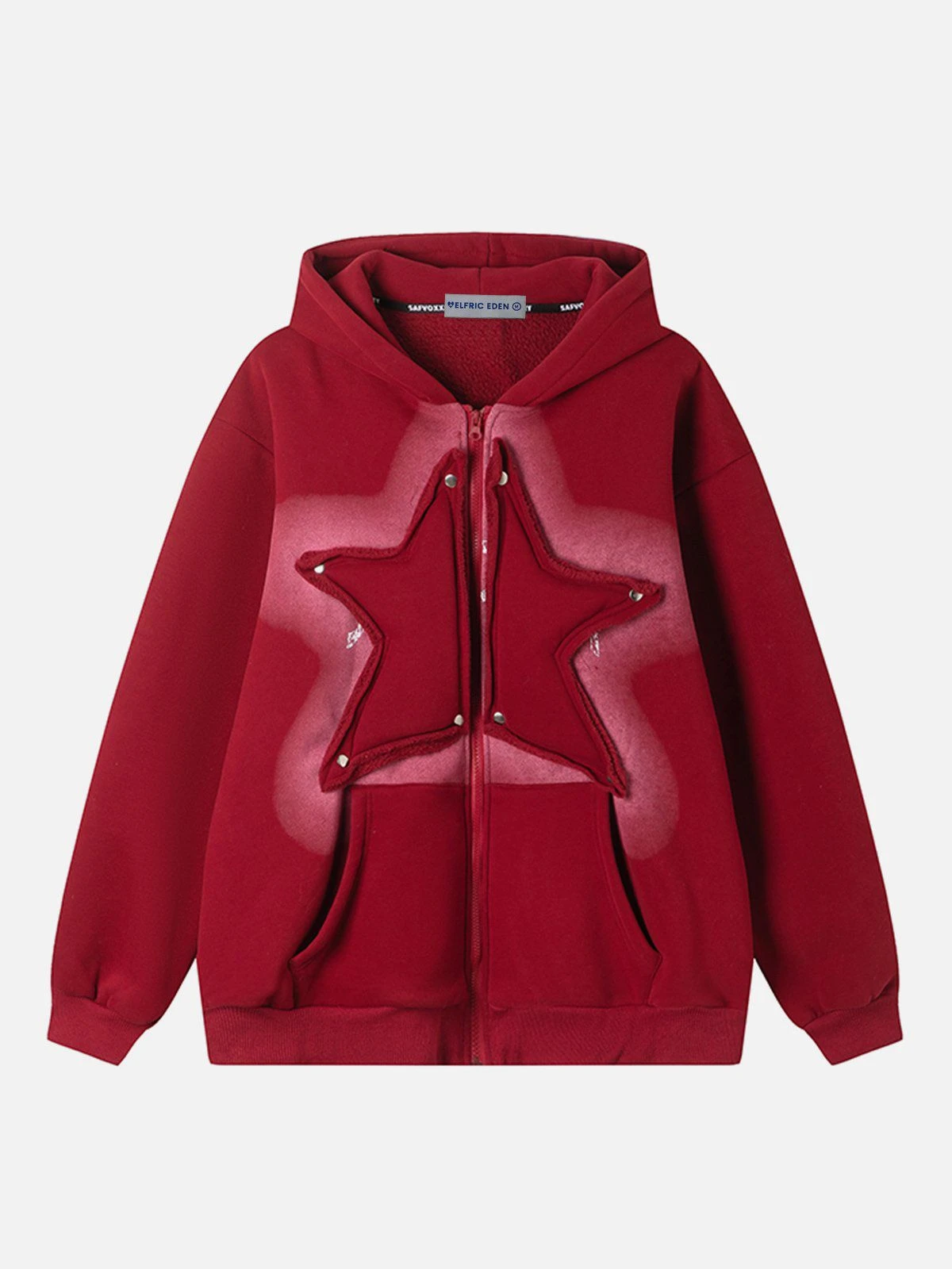 Features a stellar star design, complemented by a convenient zipper for a touch of versatility. The loose and classic fit ensures an easygoing and relaxed style that stands the test of time.