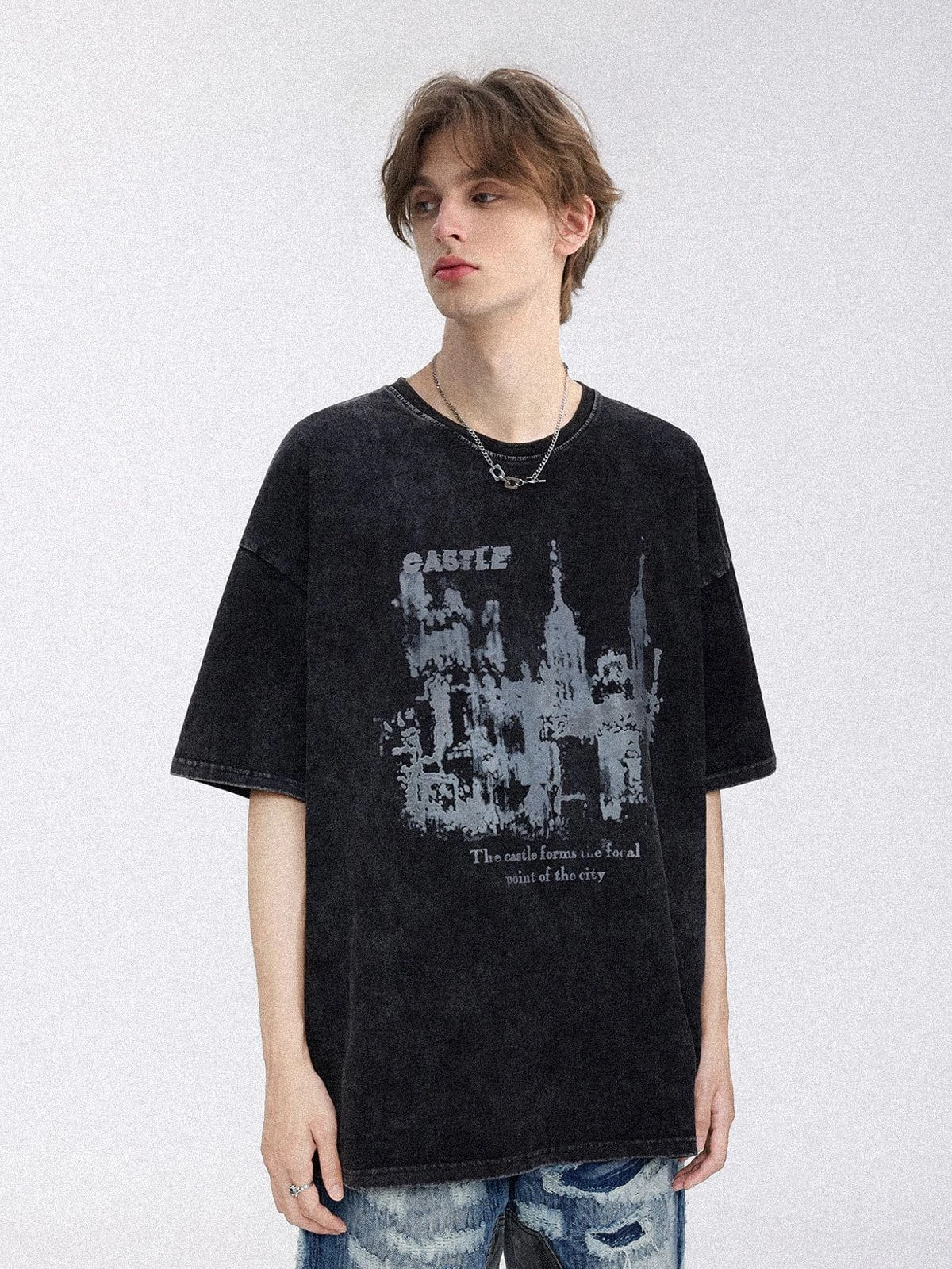 Discover a bold style and timeless look with Aelfric Eden Castle Graphic Washed Tee. Crafted from soft cotton, this tee features a striking castle graphic and washed-tone for an edgy vibe. Elevate your wardrobe with this timelessly stylish piece.
