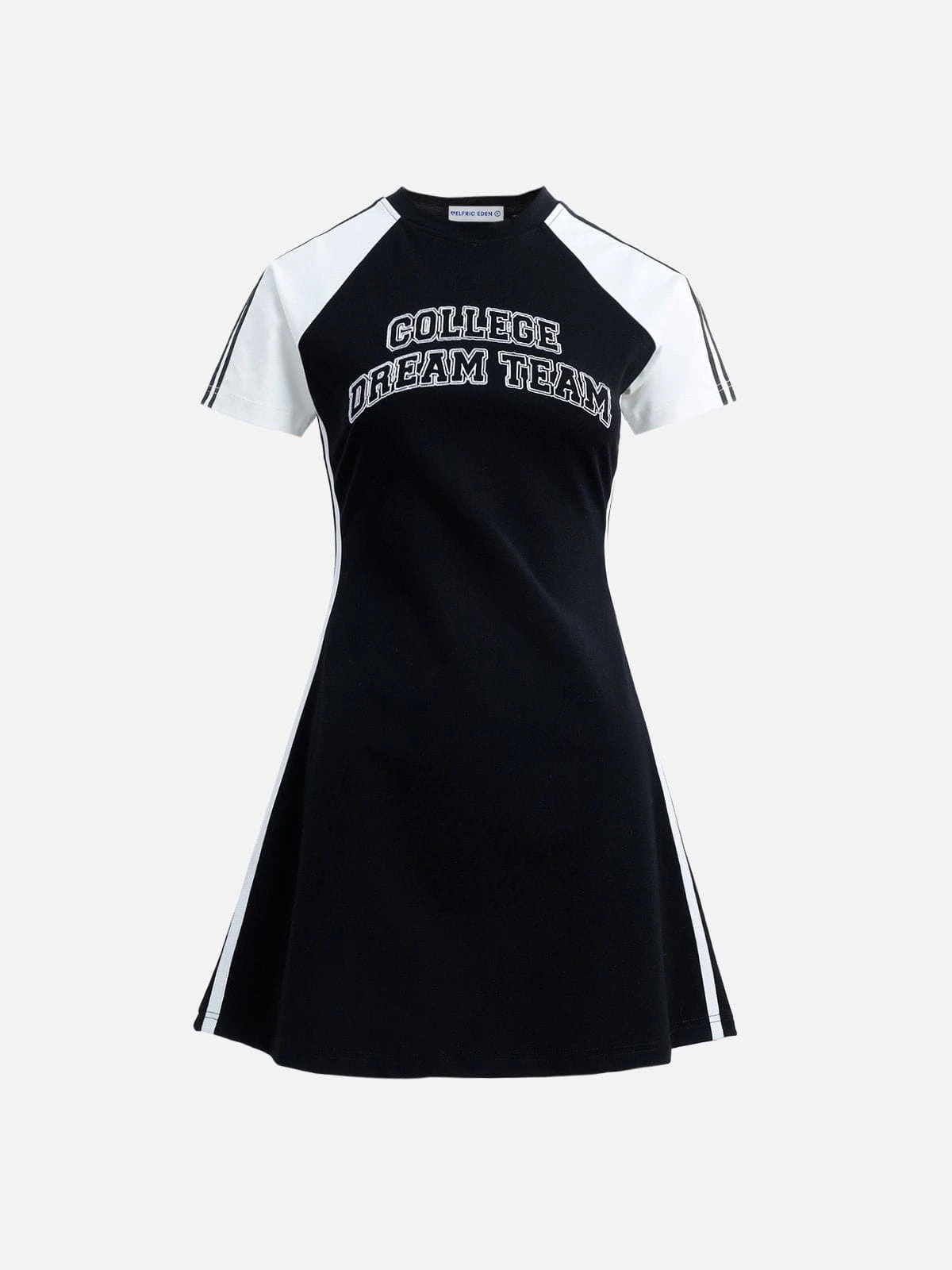 This short-sleeved dress channels collegiate flair, serving as your cheerleader—whether on campus or pursuing your ambitions.
