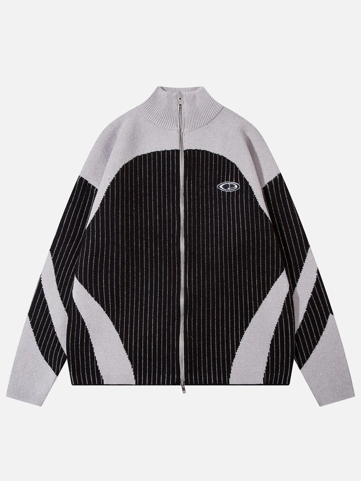 The Aelfric Eden Color Blocking Stripe Turtleneck Cardigan offers multiple ways to style with its high-neck design, providing both warmth and versatility. Its striking color combination adds a unique touch to any outfit.