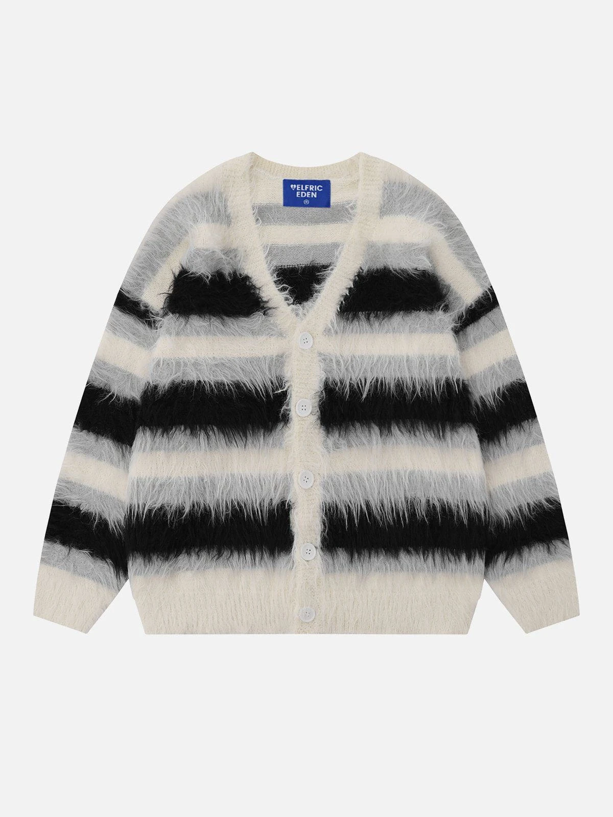 The Aelfric Eden colorblock striped cardigan’s warm, plush fabric keeps you cozy while vintage color blocking adds a touch of style. Perfect for any occasion, this cardigan will take your wardrobe to new levels of sophistication.