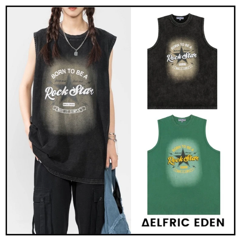 Aelfric Eden | Crew Neck Star Unisex Sleeveless Street Style Cotton
