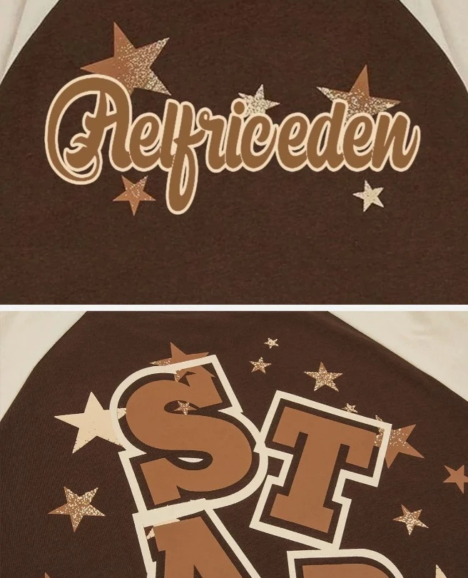 Aelfric Eden | Crew Neck Star Unisex Street Style Plain Cotton