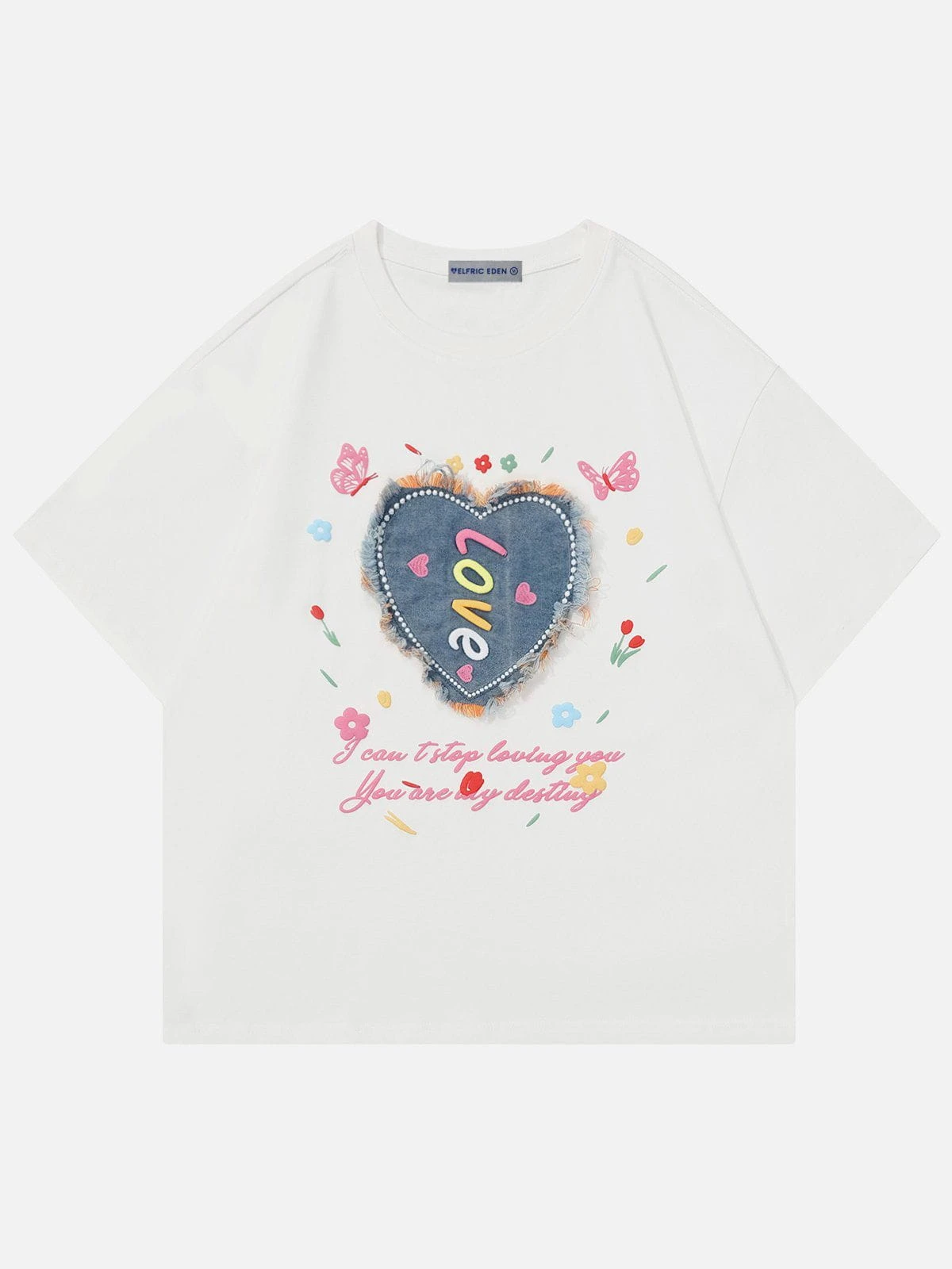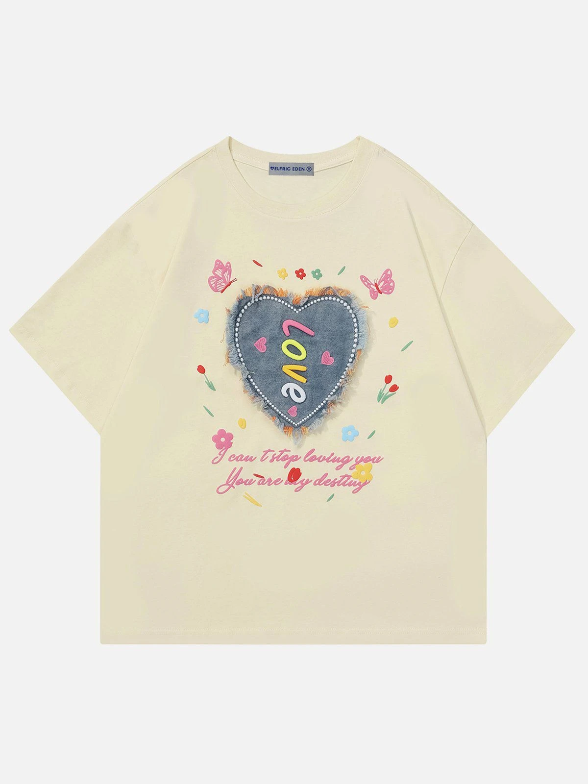 The Aelfric Eden Denim Heart Tee is a charming and stylish piece that combines the timeless appeal of denim with a playful heart motif. This tee features a heart-shaped design crafted from denim fabric, adding a touch of whimsy and romance to the garment.