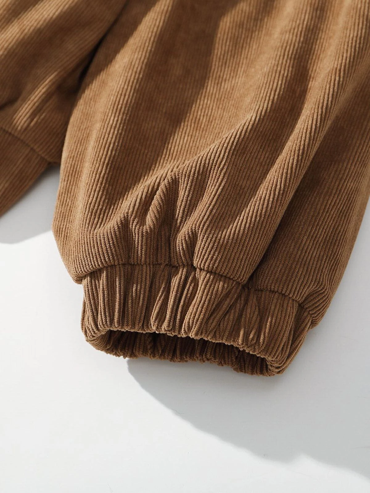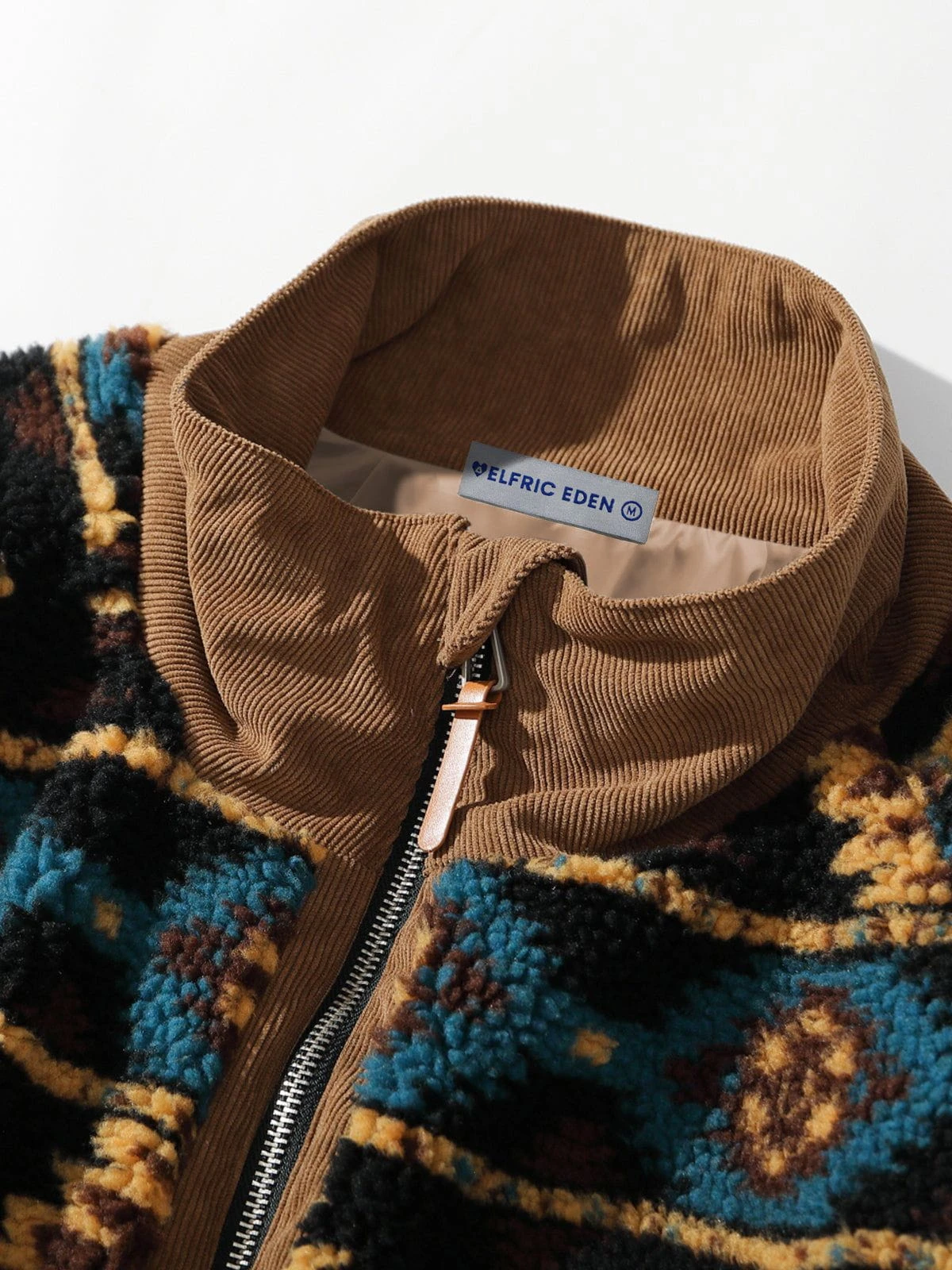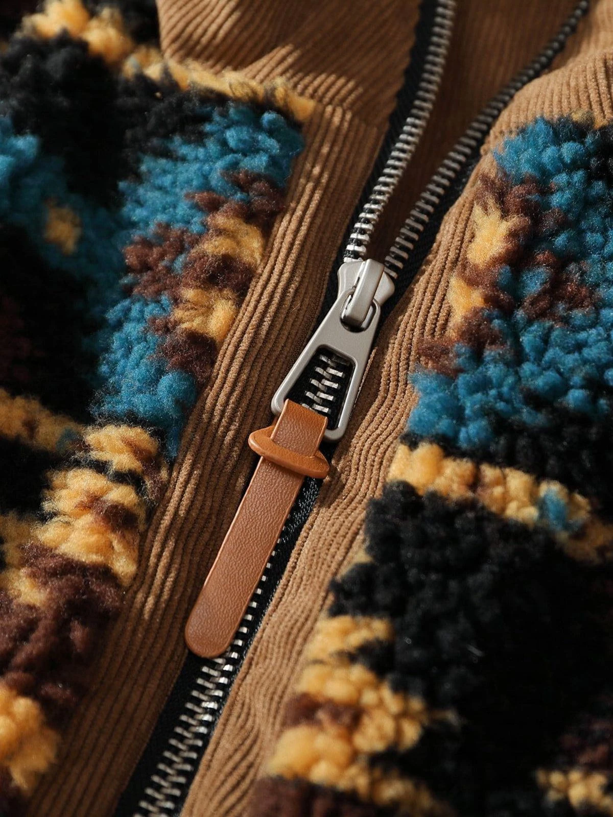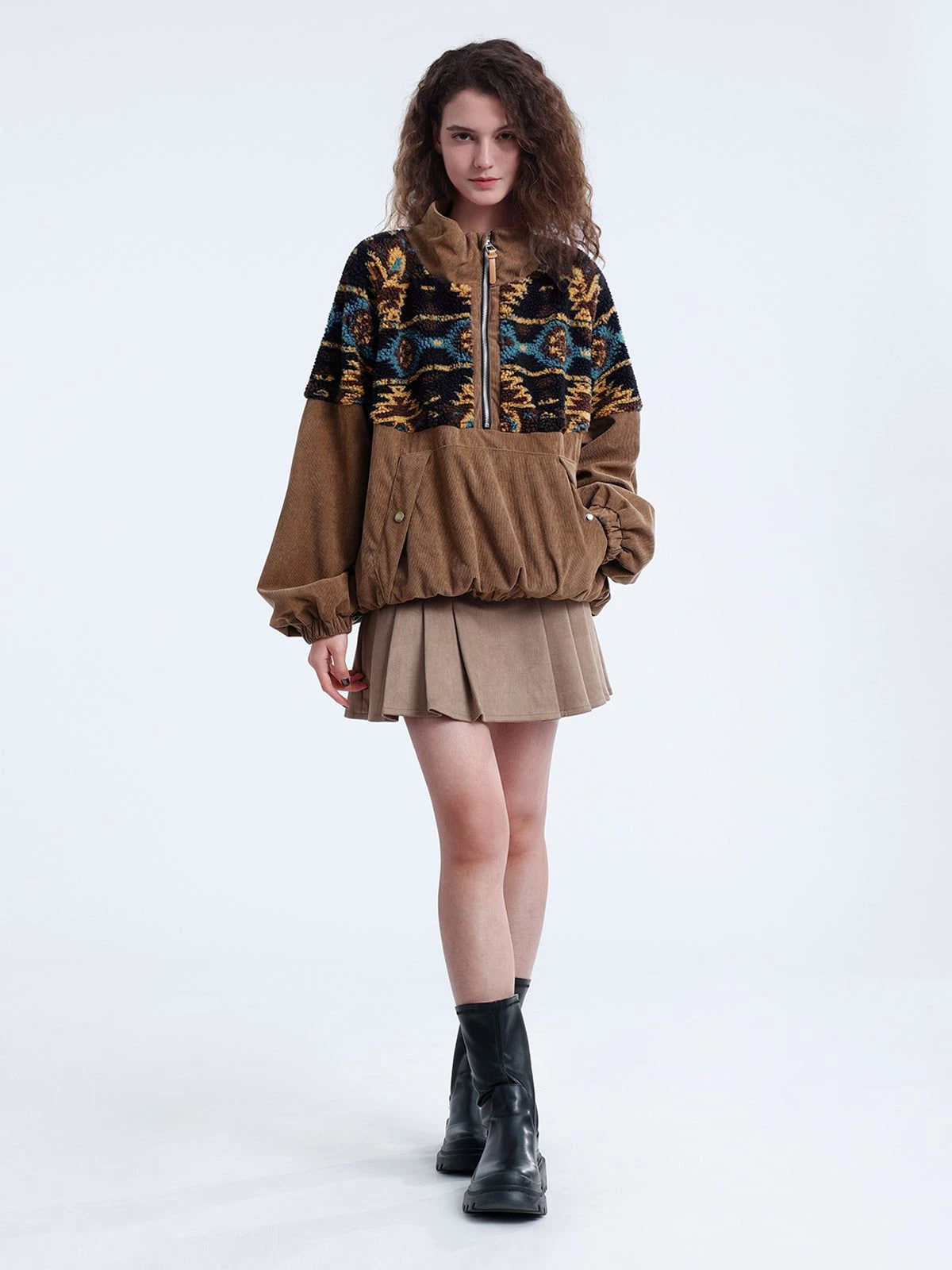 1. Heterogeneous stitching (corduroy combined with sherpa fleece) not only provides warmth but also creates a unique appearance and texture, enhancing the garment’s visual allure and design sophistication.
