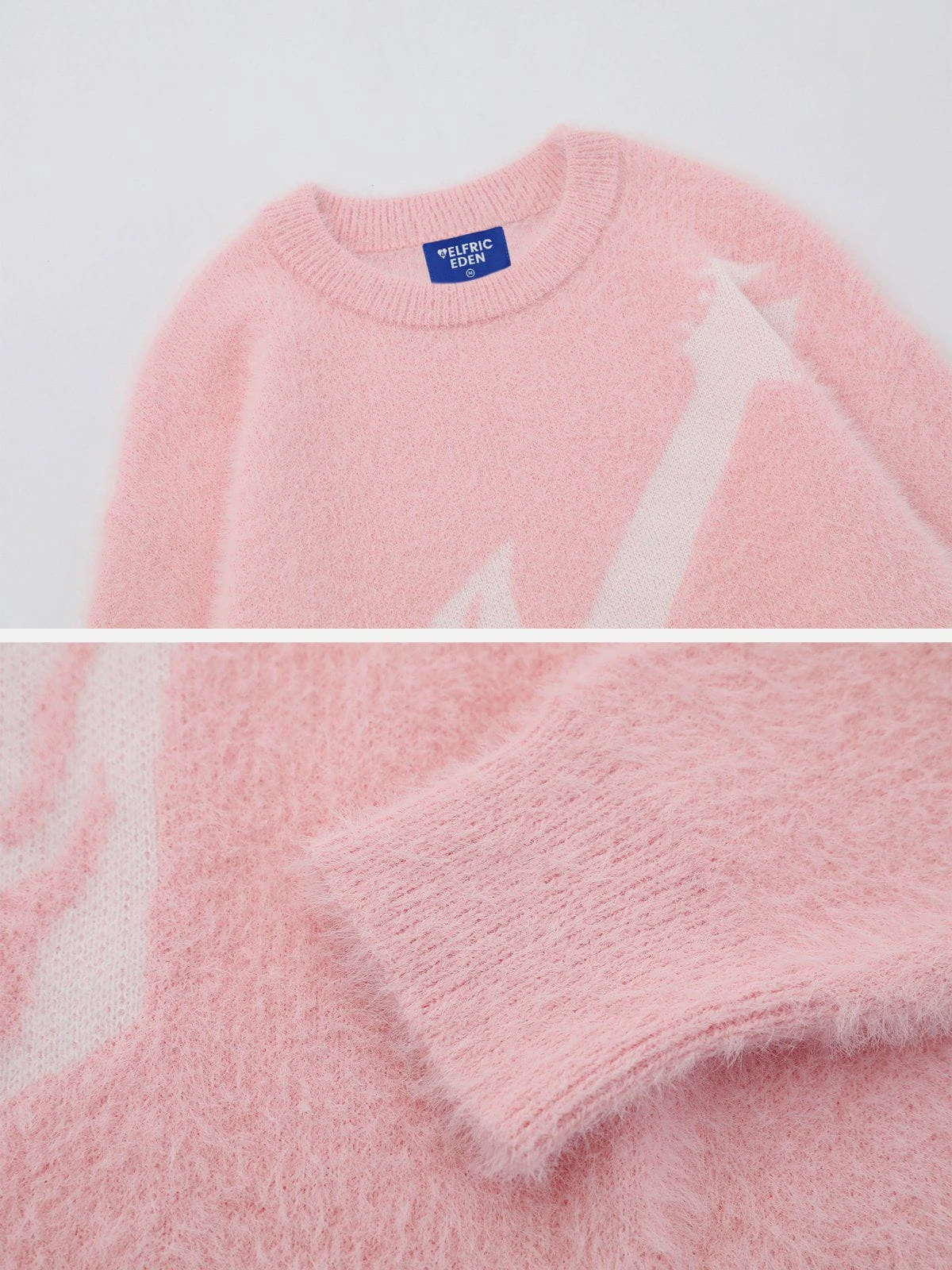 This sweater is the perfect way to express your mysterious personality. The devil expression guitar pattern subtly reflects your trendy and cool attitude. It is sweet and cool when combined with pink, allowing you to stay fashionable without sacrificing comfort!