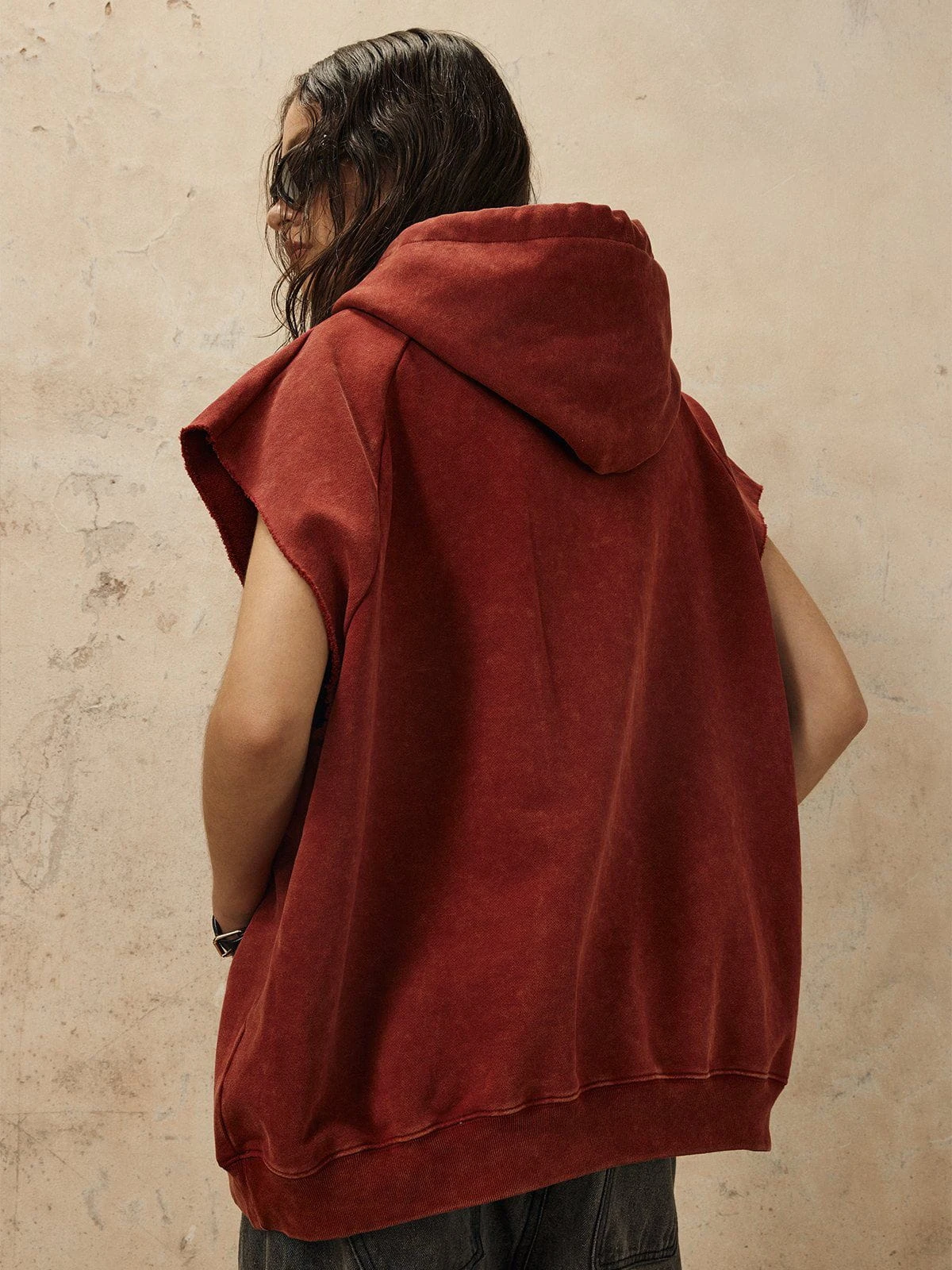 Discover the essence of style with our hooded vest – a blend of contemporary flair and vintage charm. Its faded hues evoke a timeless aesthetic, perfect for versatile fashion statements. Whether worn solo or layered, embrace the freedom to explore diverse outfit possibilities.