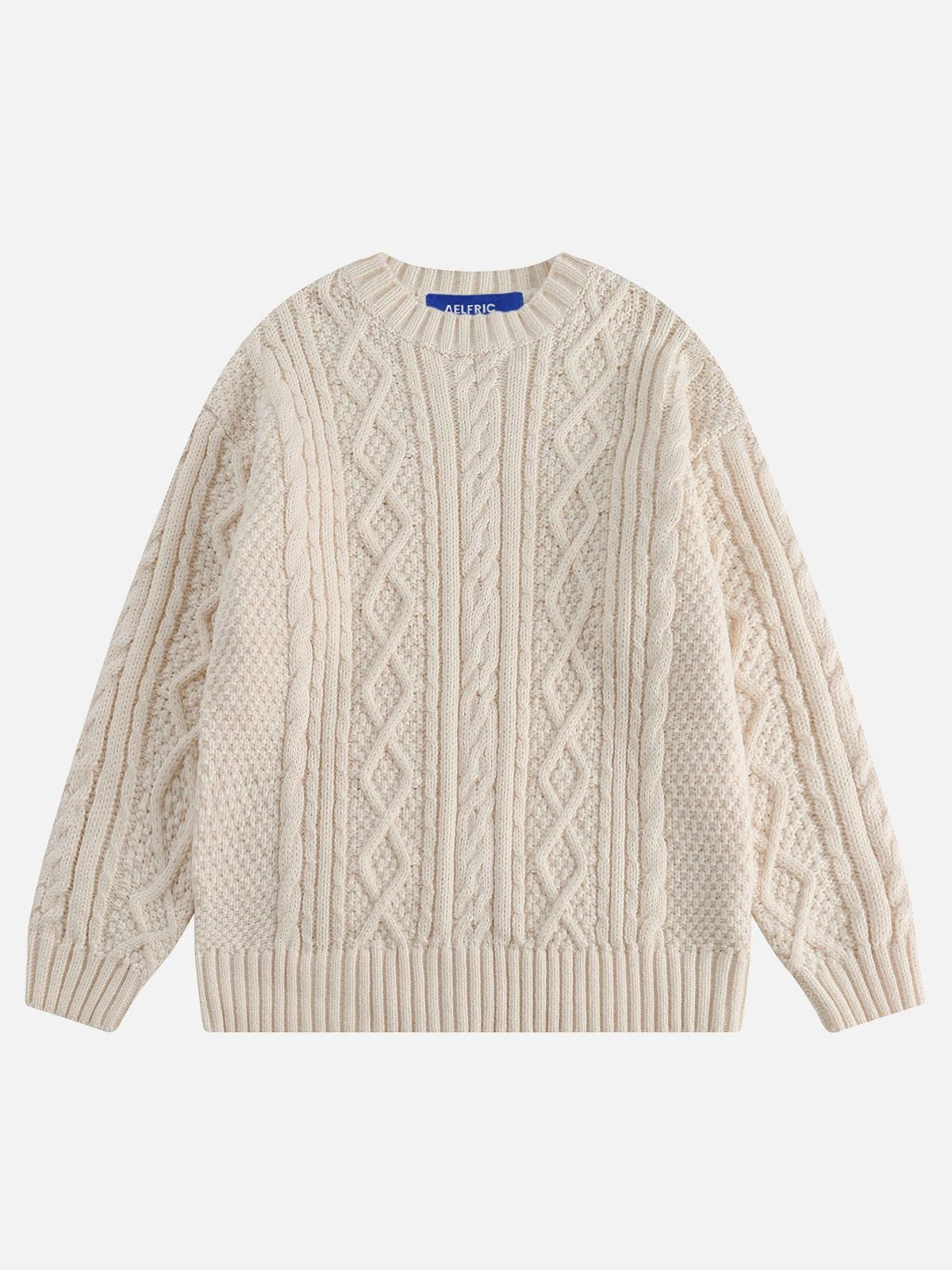 A must-have for 2023, the Aelfric Eden Knitting Solid Sweater features classic patterned knit for a chic, retro look. Enjoy timeless style with a touch of warmth and comfort.