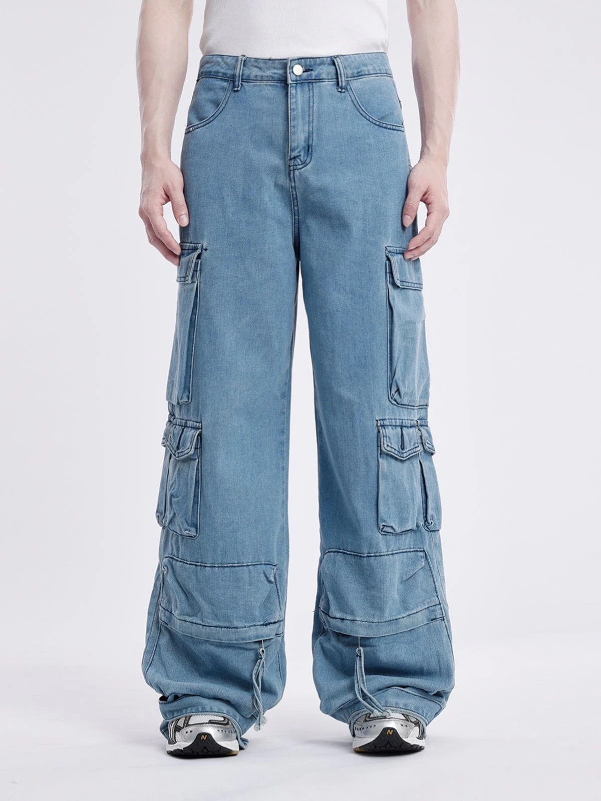 The Aelfric Eden Multi Pocket Cargo Jeans offer a unique look, featuring intricate artisanal stitching and multiple pockets with zipper details. Combining different craftsmanship techniques often leads to a longer production time, making them more expensive, but you can be sure of their high-quality standards.