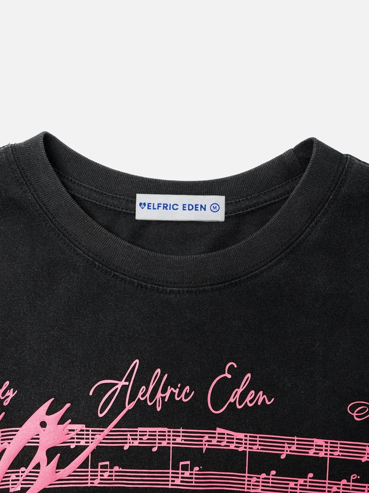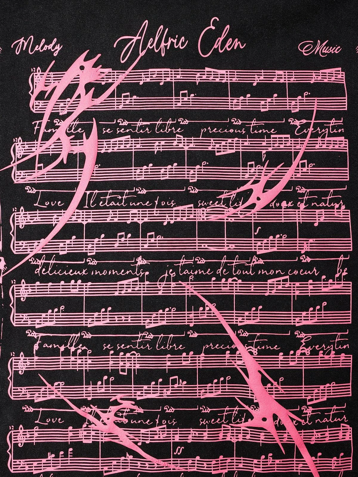 The front of the garment features a unique design with musical notation, resembling a visual representation of music. Notes and staff lines intertwine, creating an artistic atmosphere full of musical rhythm. This musical element not only adds an artistic touch to the clothing but also evokes a sense of resonance with music for the wearer.