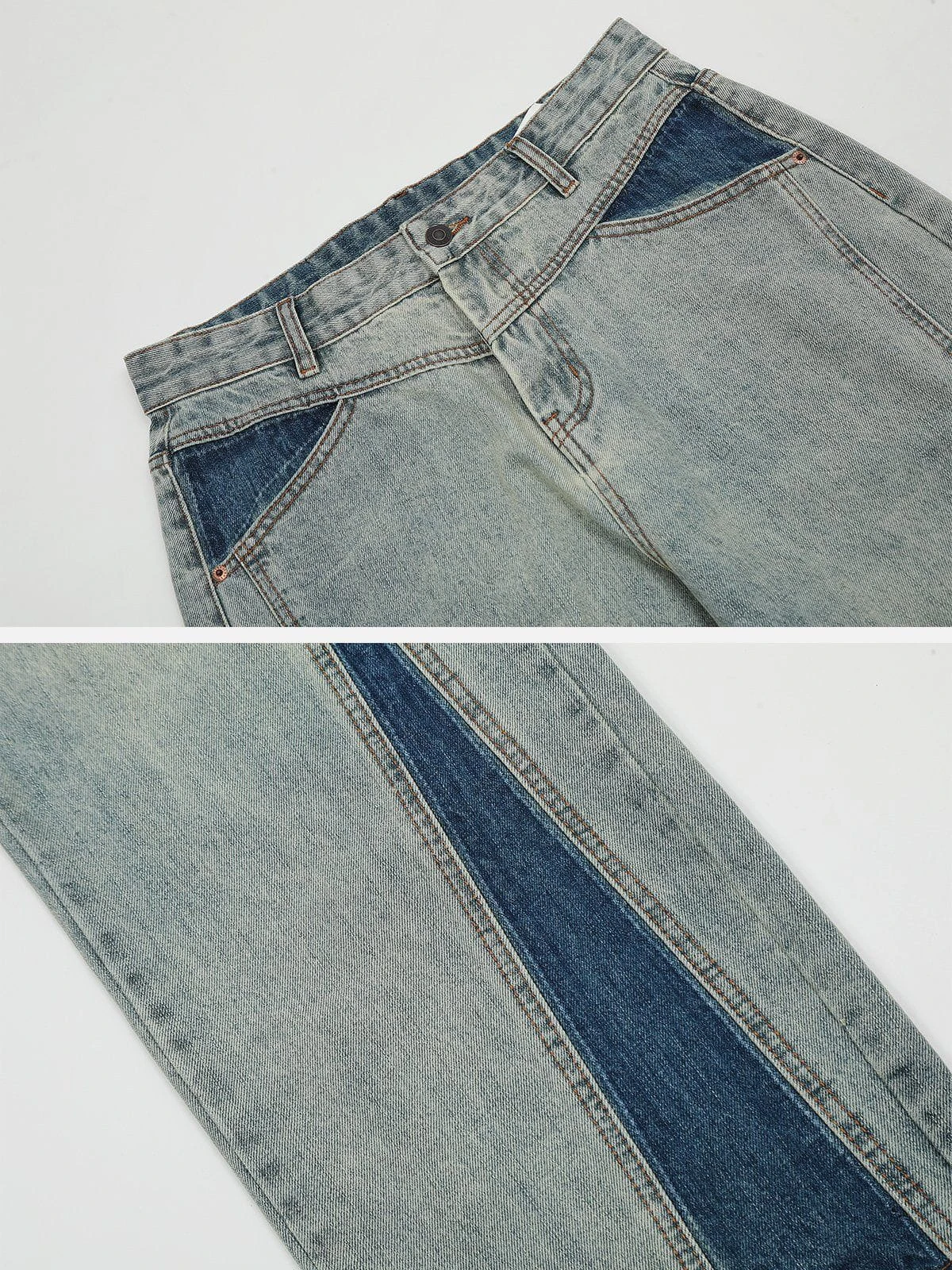 Patchwork jeans with color blocking design are a stylish choice for fashion-forward individuals. Made with a comfortable blend of cotton and spandex, these jeans offer a perfect fit and allow for ease of movement. The patchwork detailing gives these jeans a unique and trendy look, while the color blocking adds a touch of boldness.