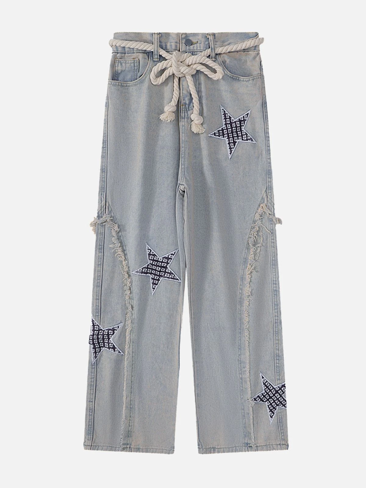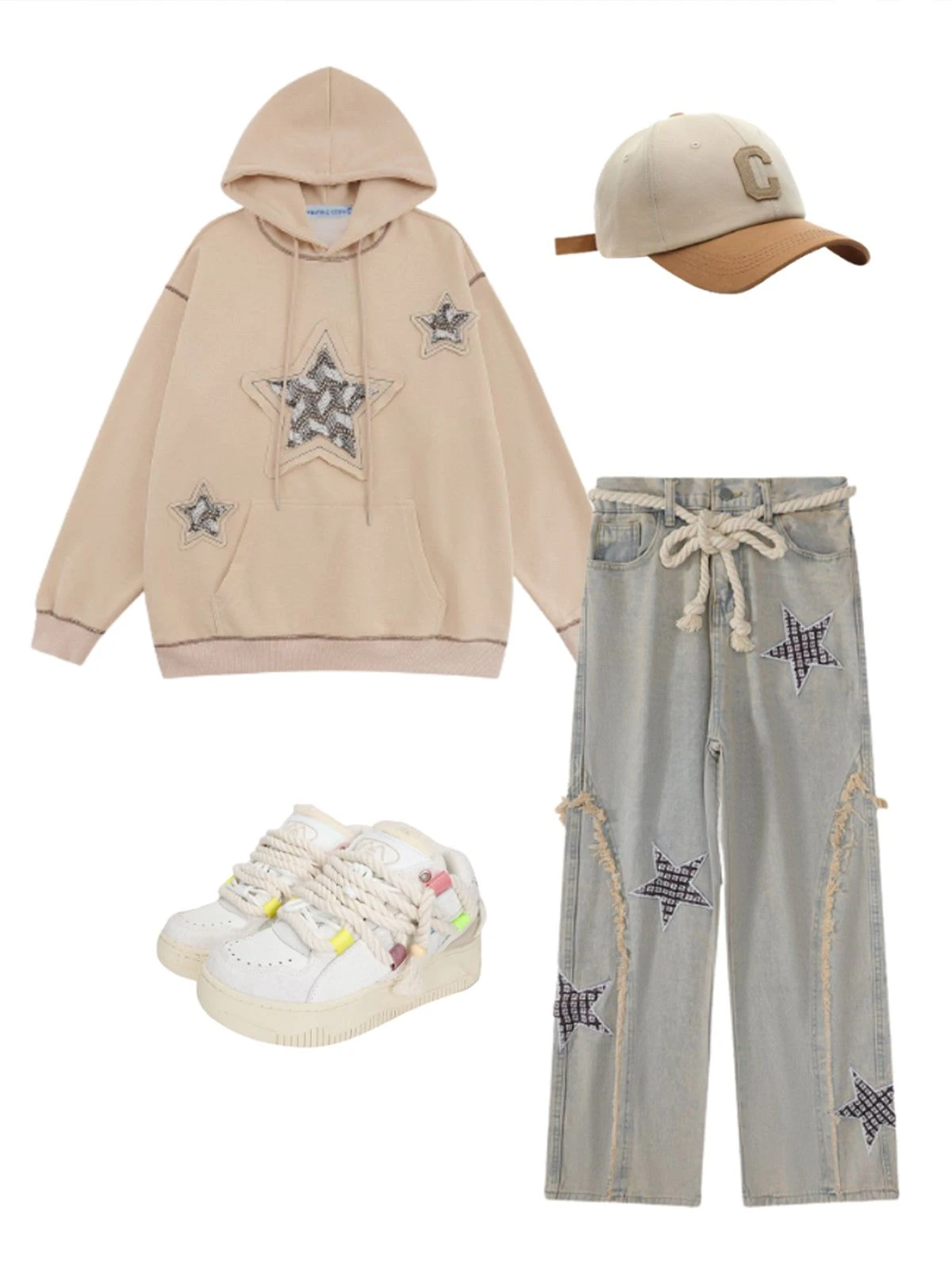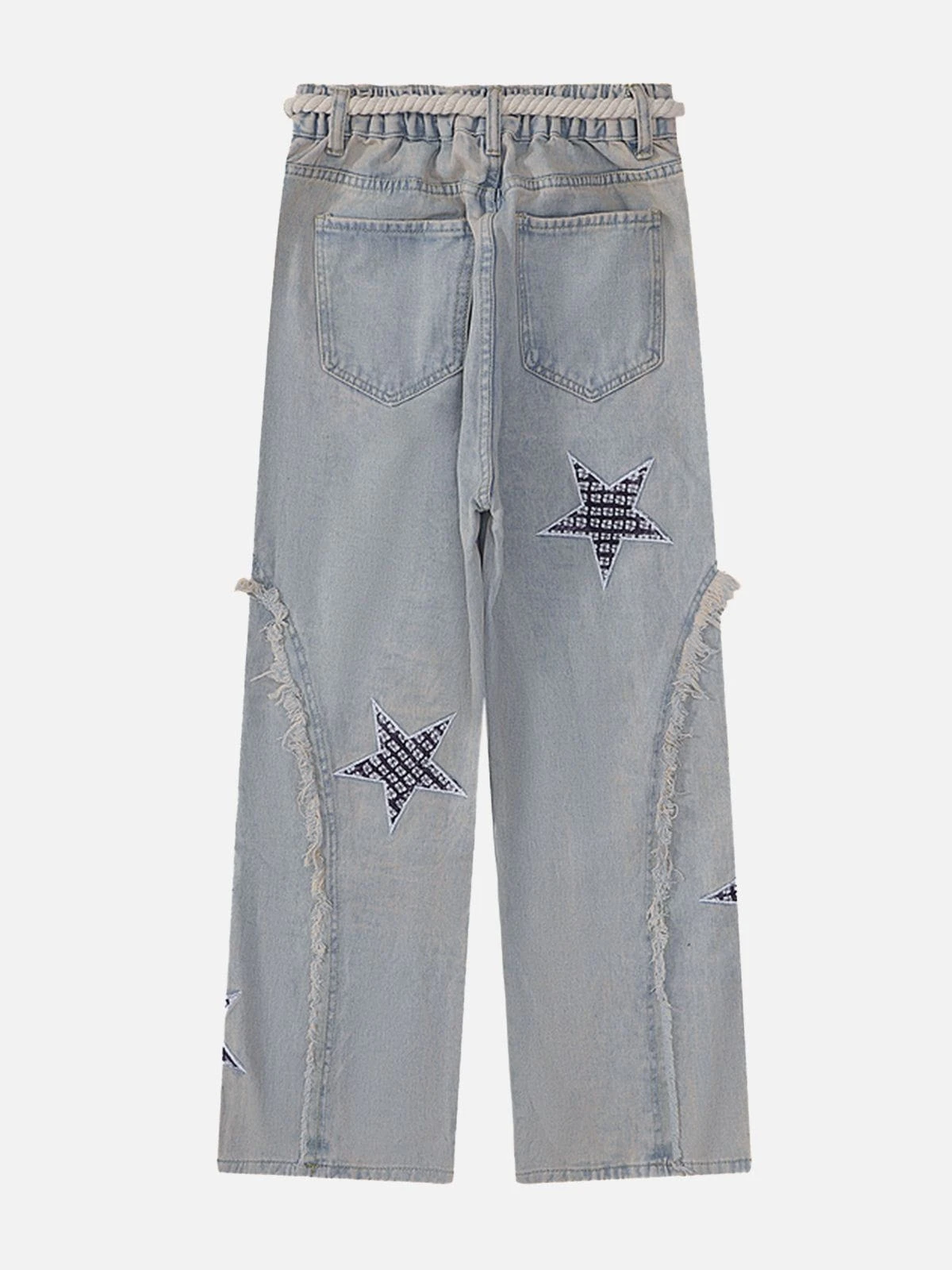 Experience a little bit of laziness with Star Embroidery Jeans. Wide-leg and slightly frayed with star embroidery, these jeans are perfect for a relaxed, campus-style look. Whether you’re meeting friends or taking a stroll, do it in comfort and style. Make every day star-spangled!