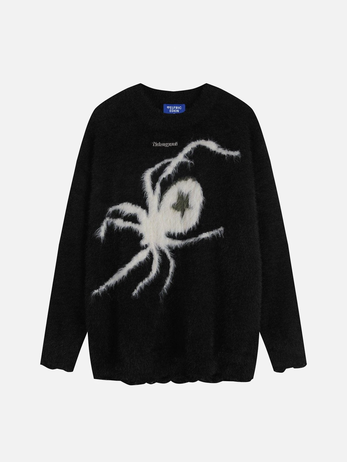 This sweater boasts a giant star-printed spider as its design element, with a red and black web looming at the back, adding an extra touch of cutesy mystery!