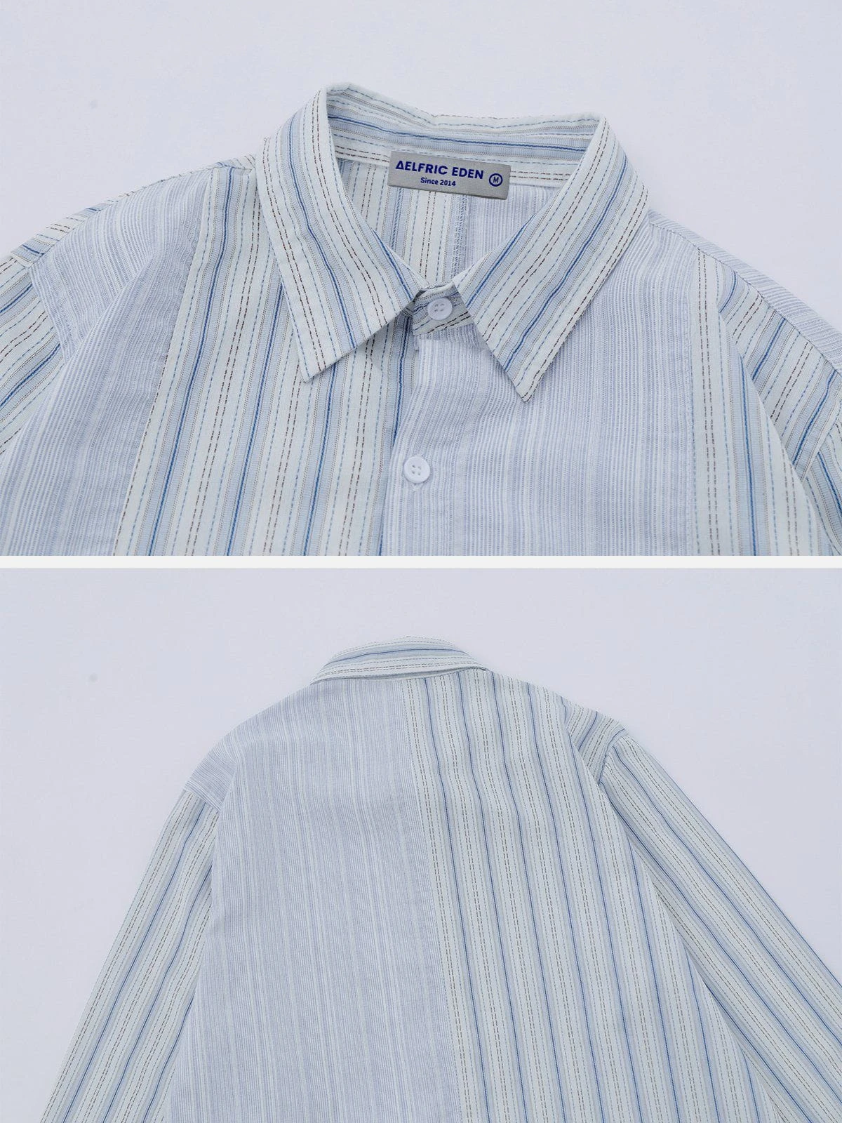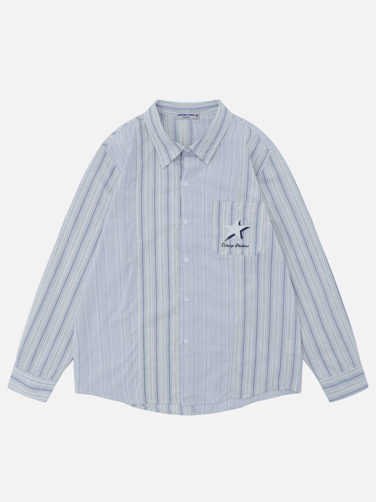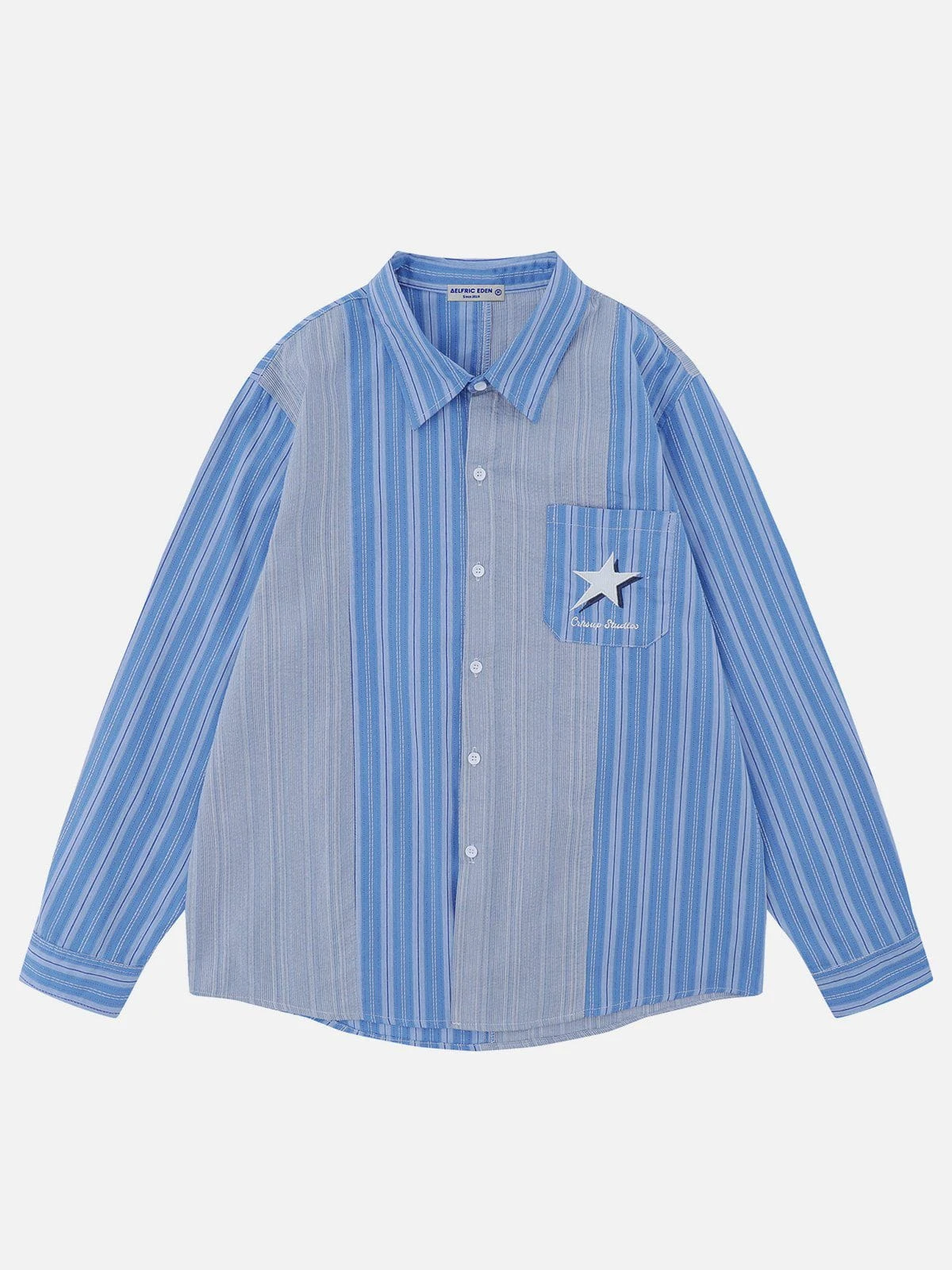 Look out of this world in the Aelfric Eden Star Stripe Patchwork Long Sleeve Shirt! This stellar piece of apparel is made with star and stripe patchwork and crafted from cotton for a relaxed fit. Shine like a supernova in style!