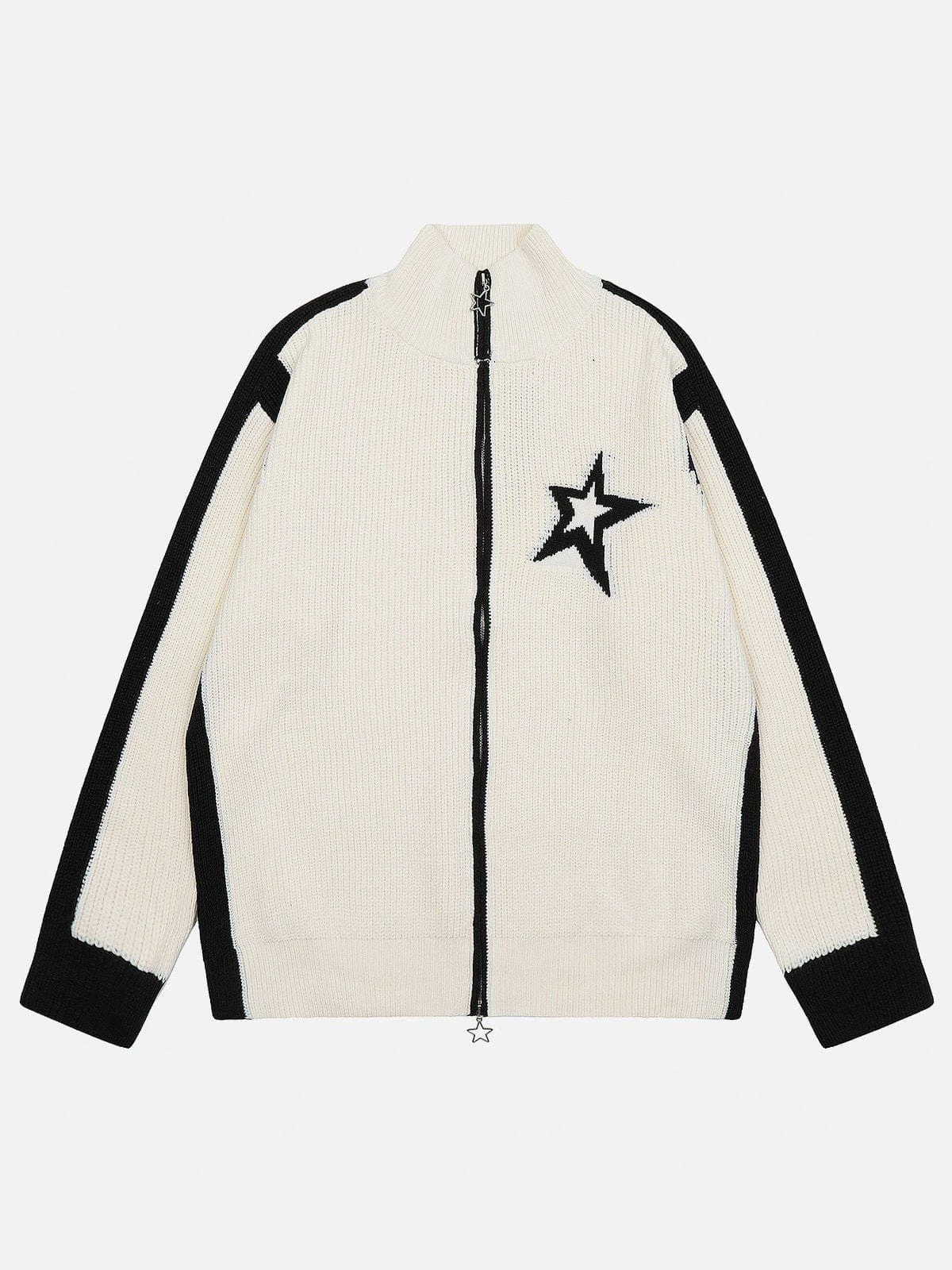 Introduce unique personality into your casual wardrobe with this Star Two Way Zipper Color Blocking Cardigan. Its two-way zipper design provides a versatile look and feel, allowing you to express yourself with a variety of stylish zip options.