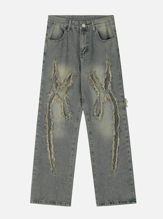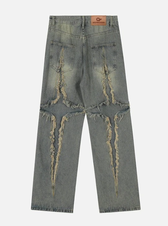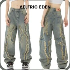 Aelfric Eden | Unisex Denim Street Style Cotton Fringes Washed Denim Jeans