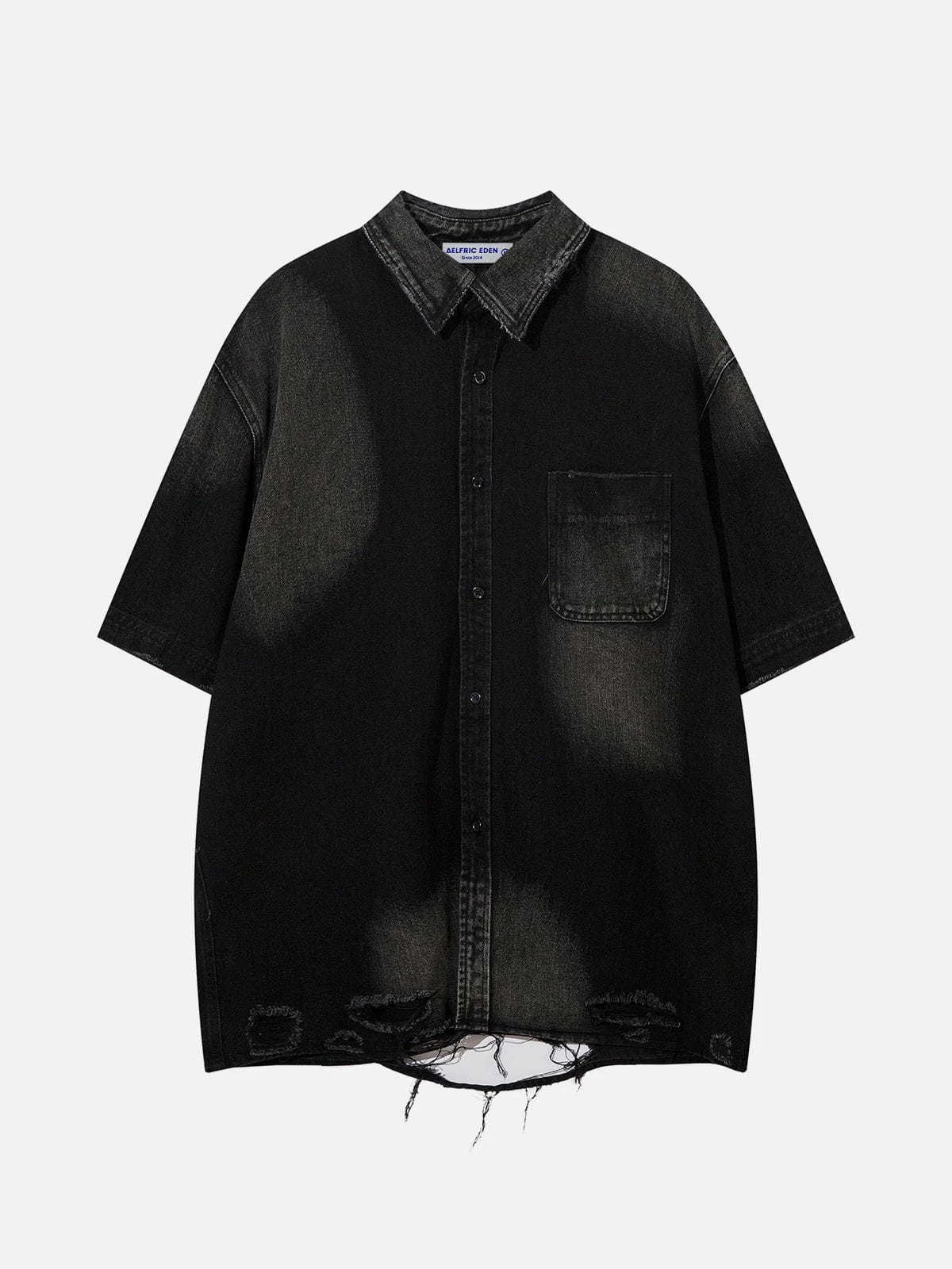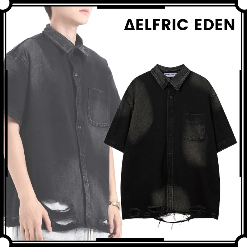 Aelfric Eden | Unisex Denim Street Style Cotton Short Sleeves Oversized