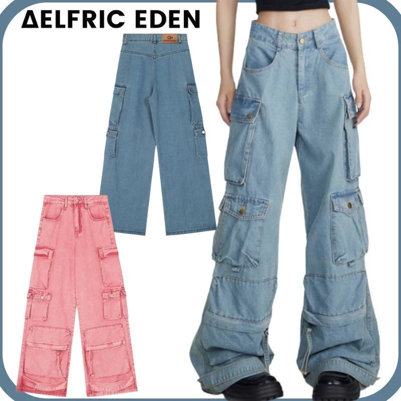 Aelfric Eden | Unisex Denim Street Style Plain Cotton Wide Leg Jeans