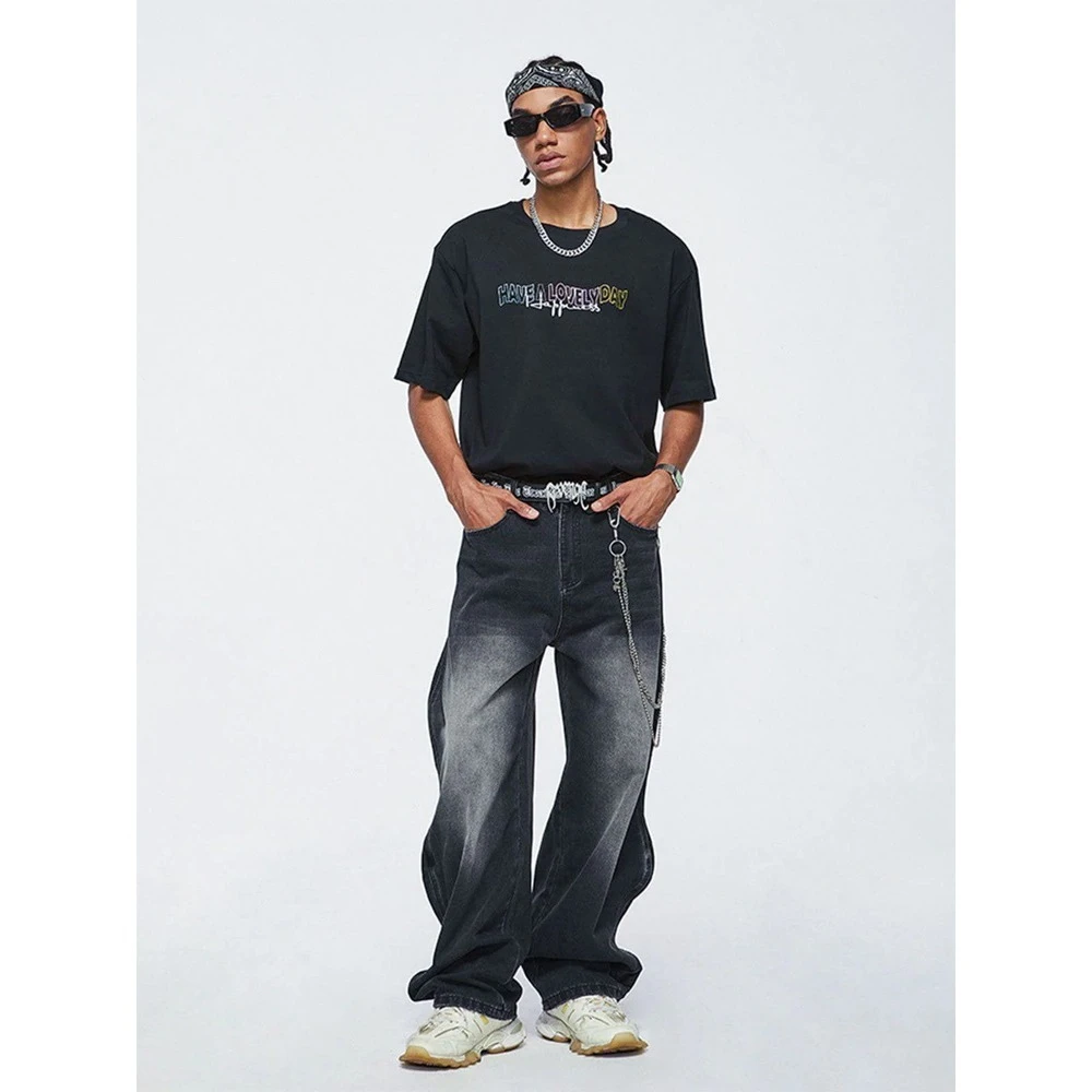 Aelfric Eden | Unisex Denim Street Style Plain Cotton Wide Leg Washed Denim