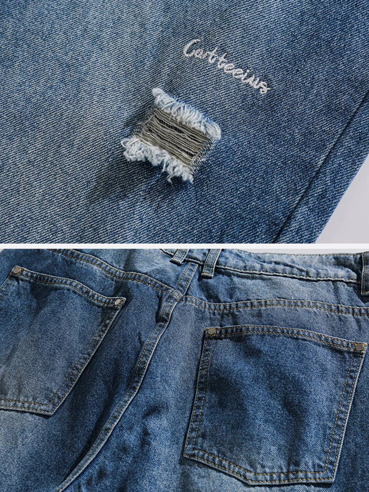 Clothing details: Distressed.