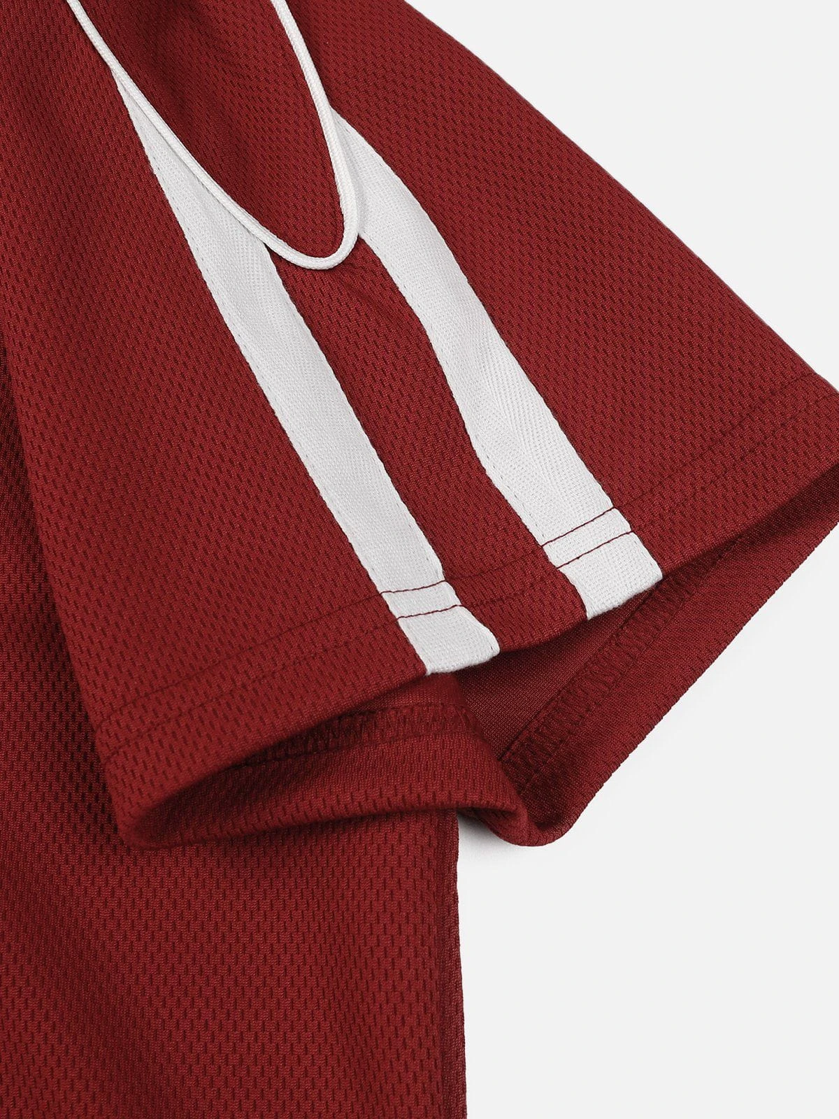 This collegiate-style garment features a moderate saturation of red, exuding a classic yet understated aesthetic. Its simple design evokes a nostalgic atmosphere, recalling fond memories of days gone by while maintaining a sense of contemporary fashion taste.