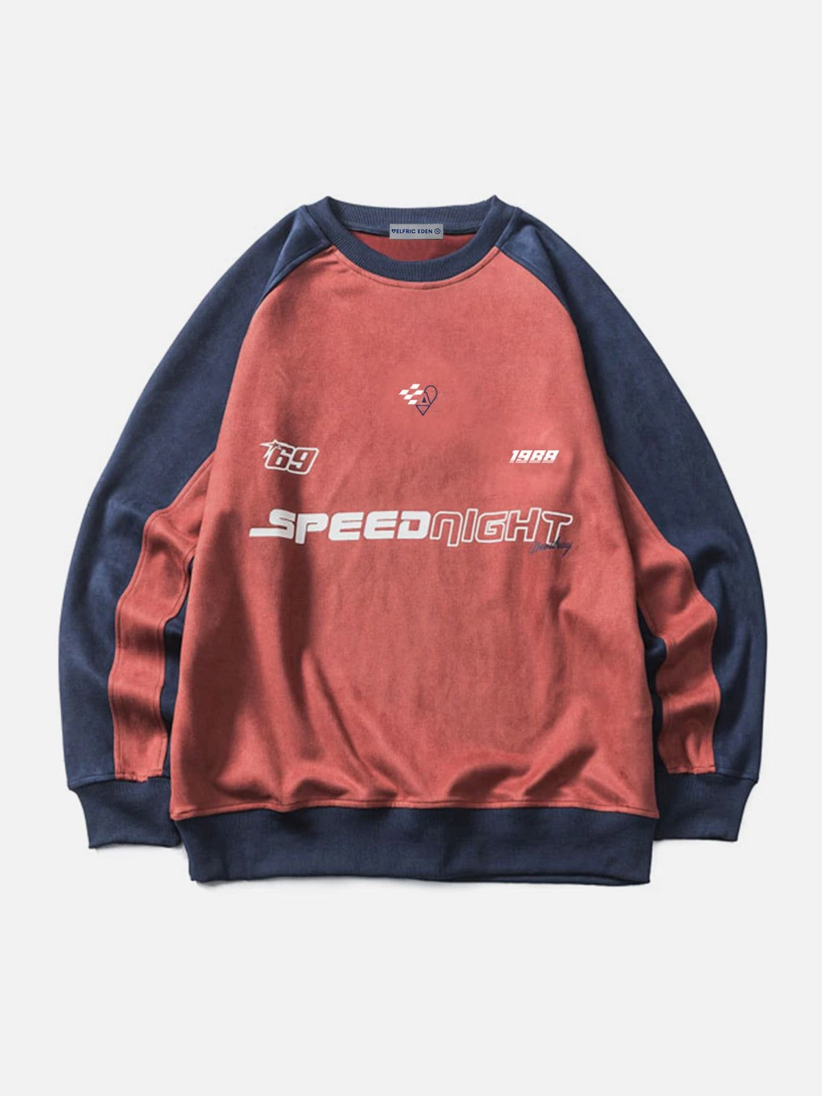 This sweatshirt with its contrasting color design and lettering badge, seamlessly blends racing and casual styles. Stay relaxed yet stand out with this unique look.