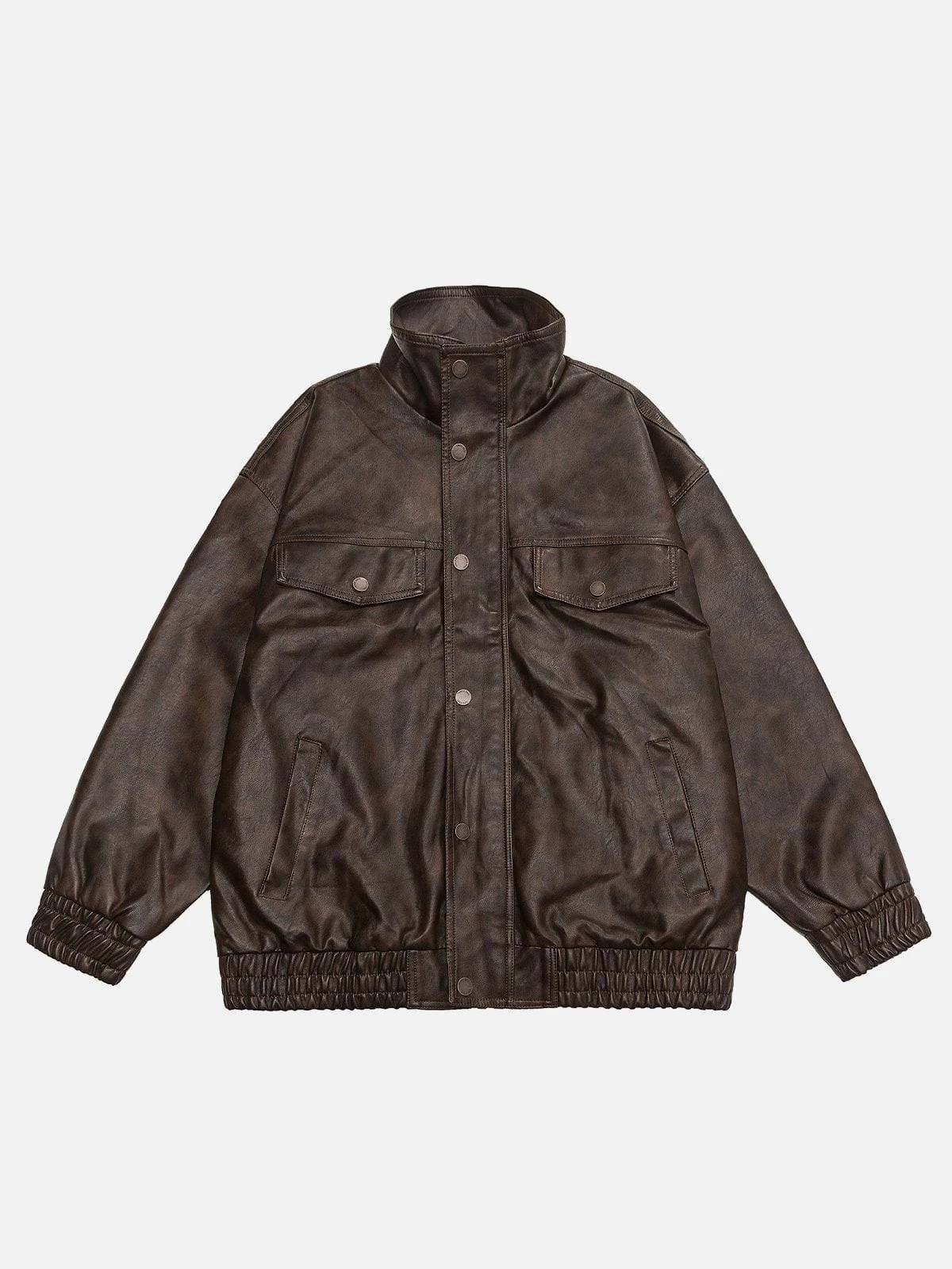 Embrace a vintage vibe with the Aelfric Eden faux leather jacket. Inspired by 90s fashion and washed for a worn-in look, this jacket exudes effortless coolness. Perfect for adding a touch of edge to any outfit.