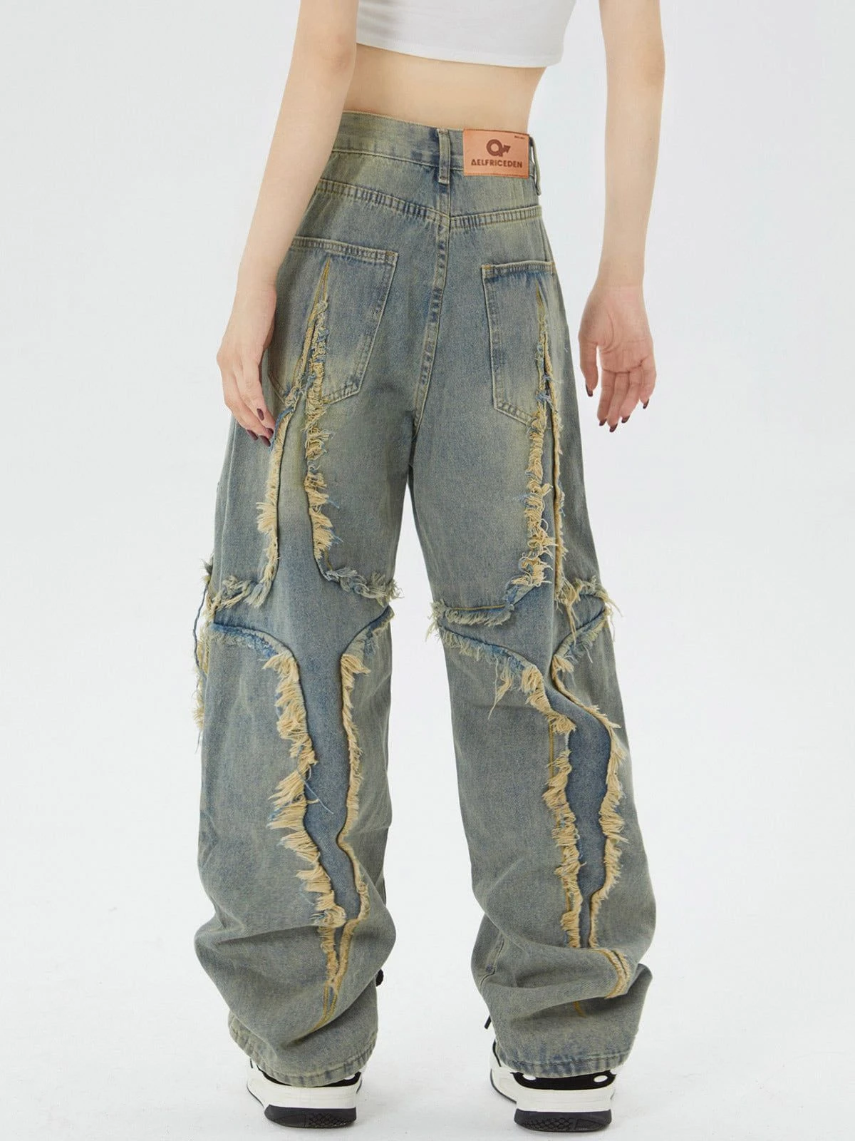 Go back to the retro look with these Aelfric Eden Washed Fringe Jeans! The fringe-shaped wash and loose fit make these jeans a fashionable partner for your wardrobe. Don’t miss out — snatch a pair of these babes up before they’re all snapped up!Â