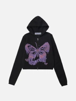 The Butterfly Print Hoodie – a blend of comfort and style. Adorned with exquisite butterfly prints, this hoodie adds a touch of elegance to your casual wear. Crafted for both comfort and fashion, it’s the perfect choice for those who seek unique and versatile attire.
