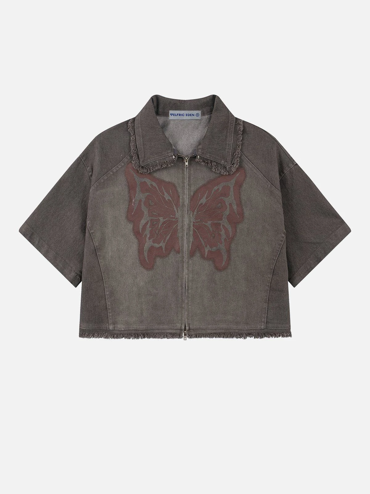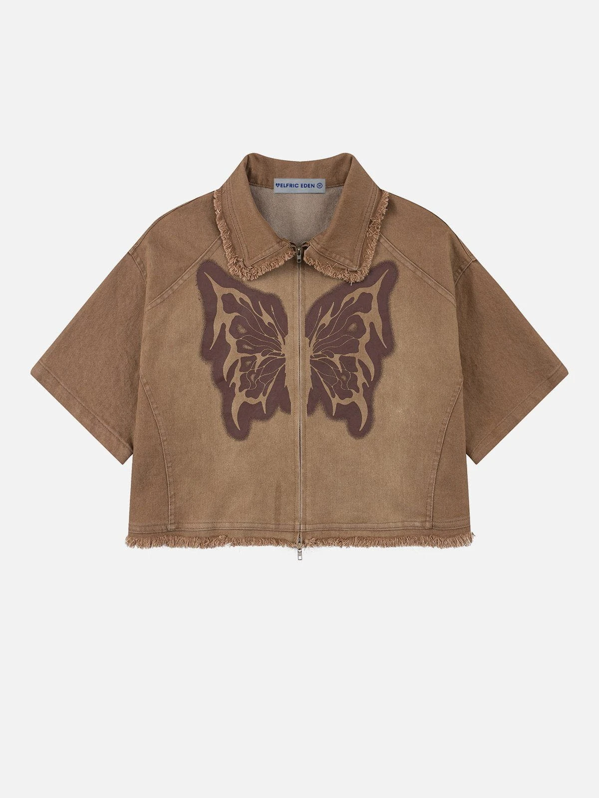 This T-shirt flaunts a daring butterfly print, exuding a cool and edgy personality. Infused with retro vibes and meticulous craftsmanship, it becomes the perfect pick for rocking out to tunes on summer streets with friends.