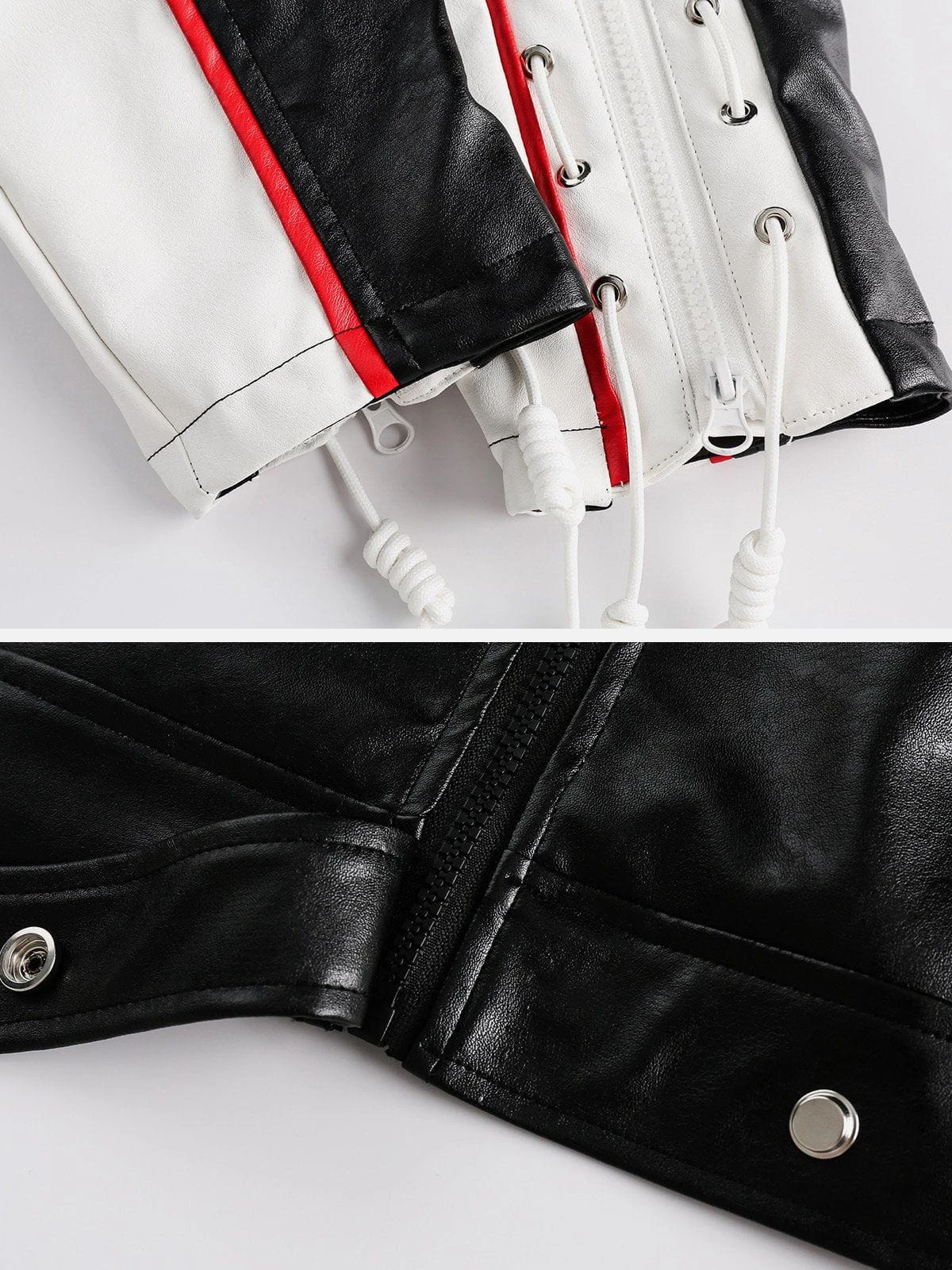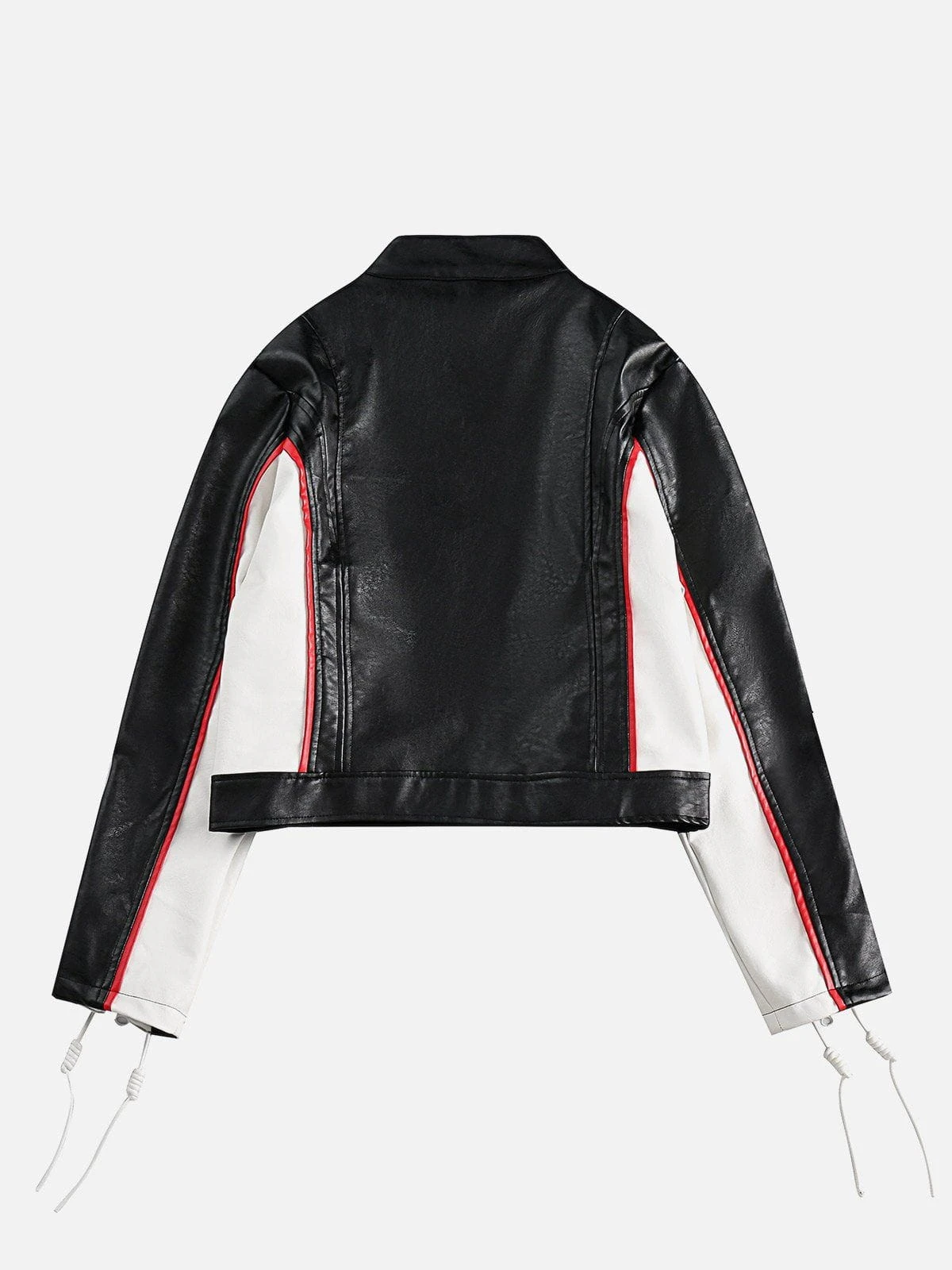 This jacket features a patchwork design that subtly combines classic shades of black and white. In order to increase the flexibility and comfort of wearing, we specially designed the cuff tie and zipper, you can adjust the size of the cuff according to your needs.