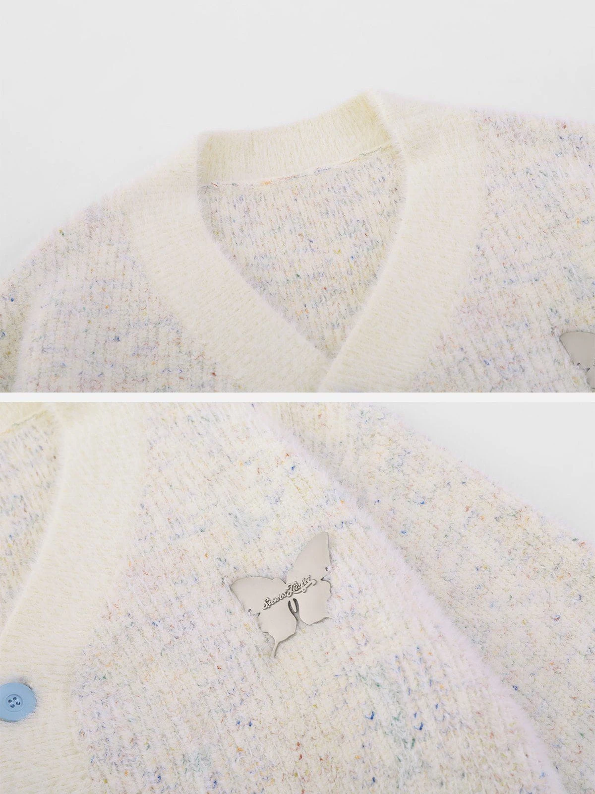 –Clothing details: Butterfly embroidery.