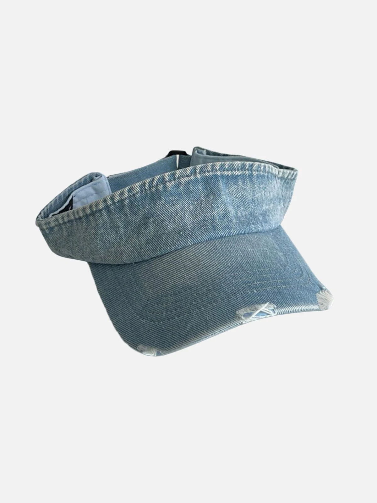 This Distressed Washed Denim Visor is designed to keep you looking fashionable while protecting your face from the elements. Its simple design goes with any outfit and its distressed, washed denim fabric ensures maximum skin protection. Perfect for any occasion!