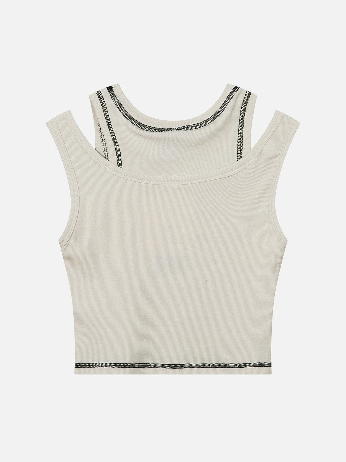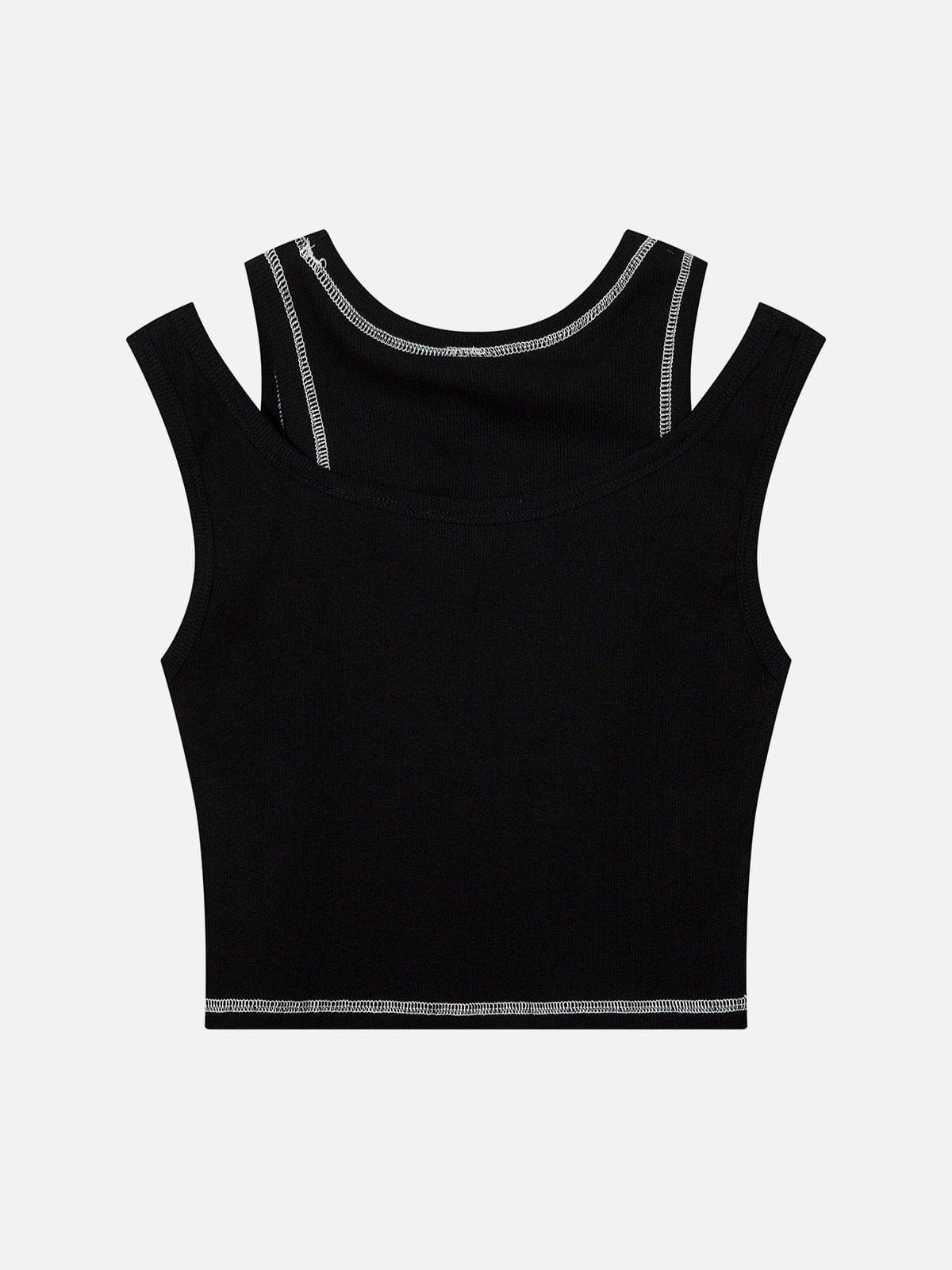 The Tank Top with an exposed seam design and shoulder cutout is a perfect blend of style and comfort. The exposed seams add a unique and edgy touch to the overall design, giving it a modern and trendy look. The shoulder cutout detail adds a hint of sophistication and elegance.