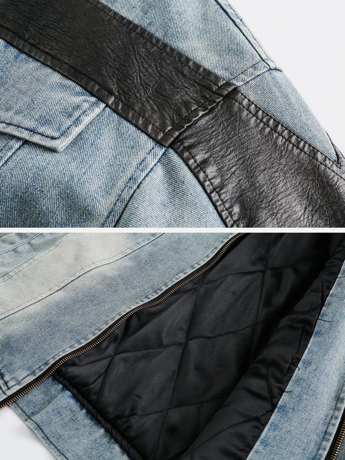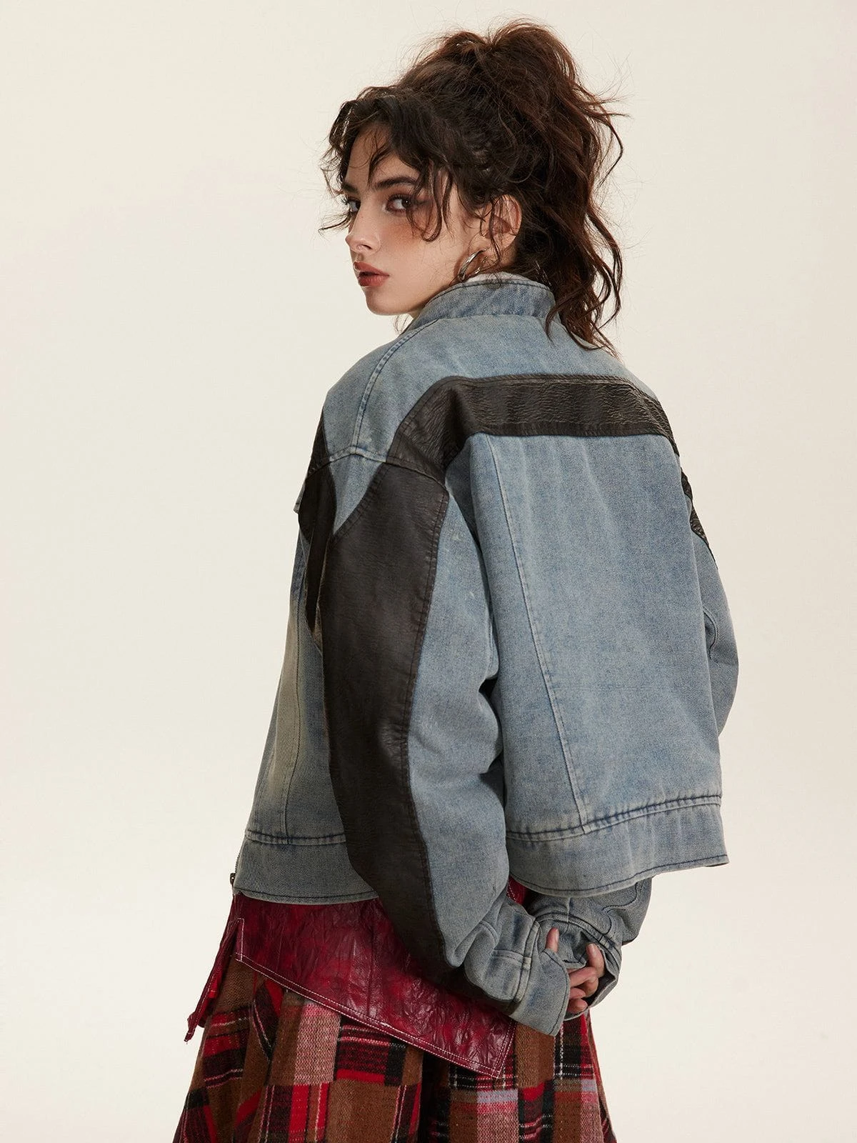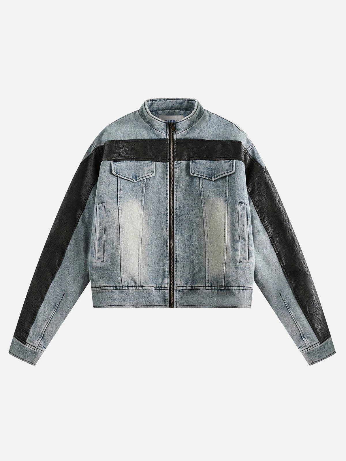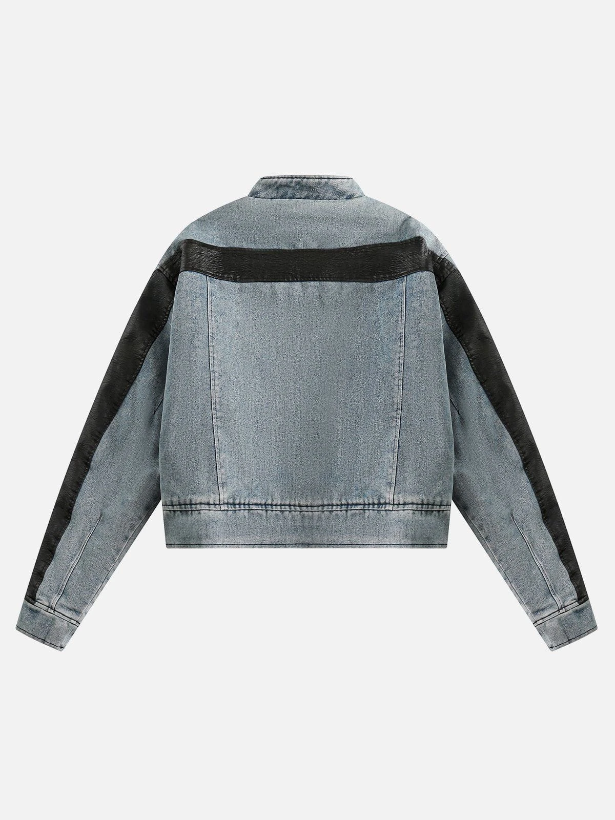This faux-leather patchwork denim racing jacket is a hip, stylish statement piece that will take you from street to track, and back again! With its edgy design and unique combination of materials, it’s sure to turn heads and race up the fashion rankings!