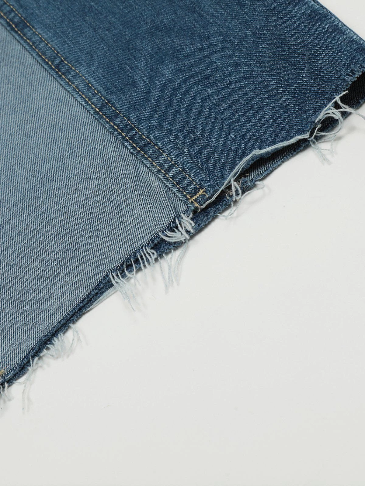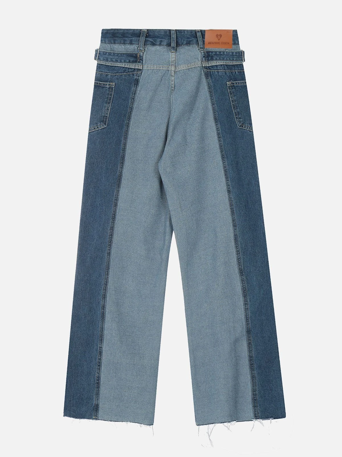 These jeans feature trendy splicing, maintaining a simple and retro look for a low-key yet uniquely charming appearance, subtly enhancing your outfit.