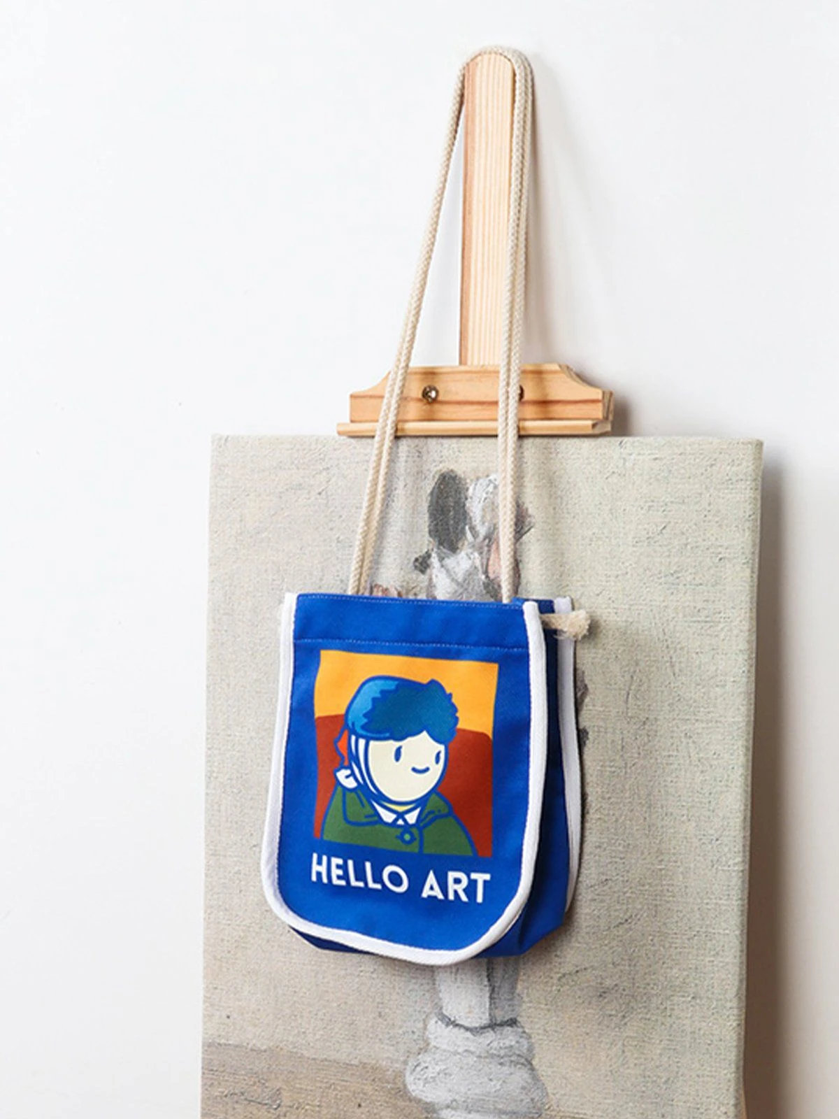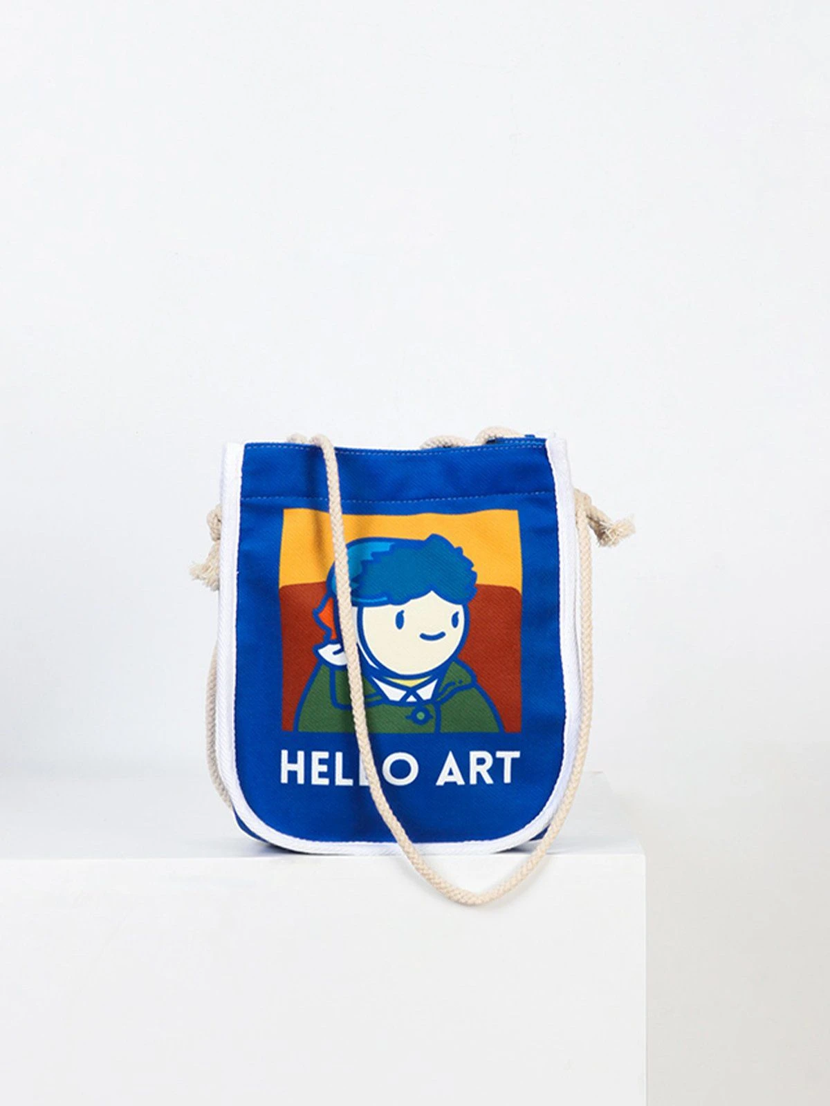 Carry a cartoon version of the iconic Vincent Van Gogh self-portrait with you wherever you go. Our canvas bag is not only practical but also a fun and playful accessory