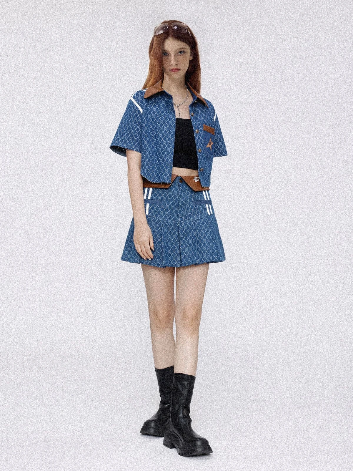 This stylish Vintage Denim Jacquard Skirt is sure to mix it up in your wardrobe! The jacquard fabric adds a unique texture and character that’ll bring any outfit to the next level. Put this skirt to good use and show off your fashion prowess!