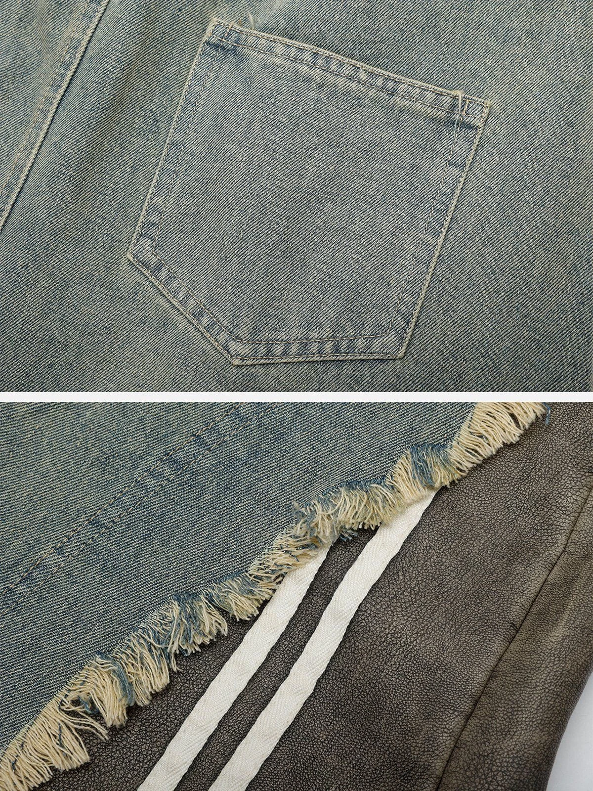 -Composition: Denim: 100% Cotton, PU: 90% Polyester, 10% Cotton.