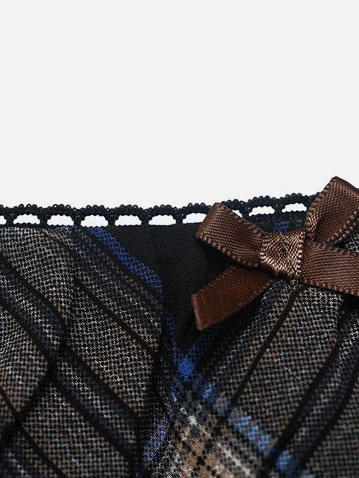 –Clothing details: Plaid.